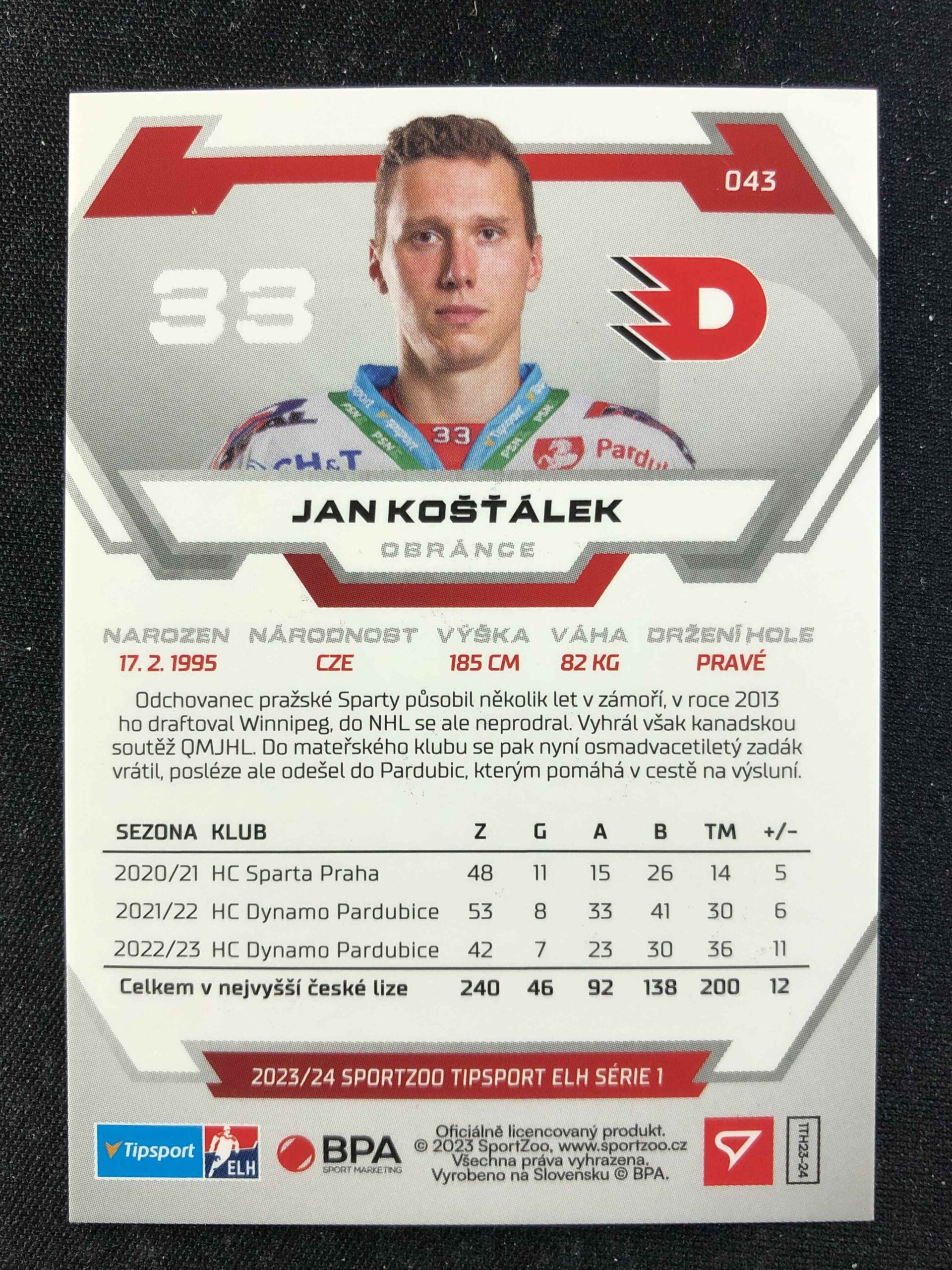 Sběratelská karta 2023/2024 Sportzoo Serie 1 Blade Sparks 43 Jan Košťálek Paralel 1 of 25