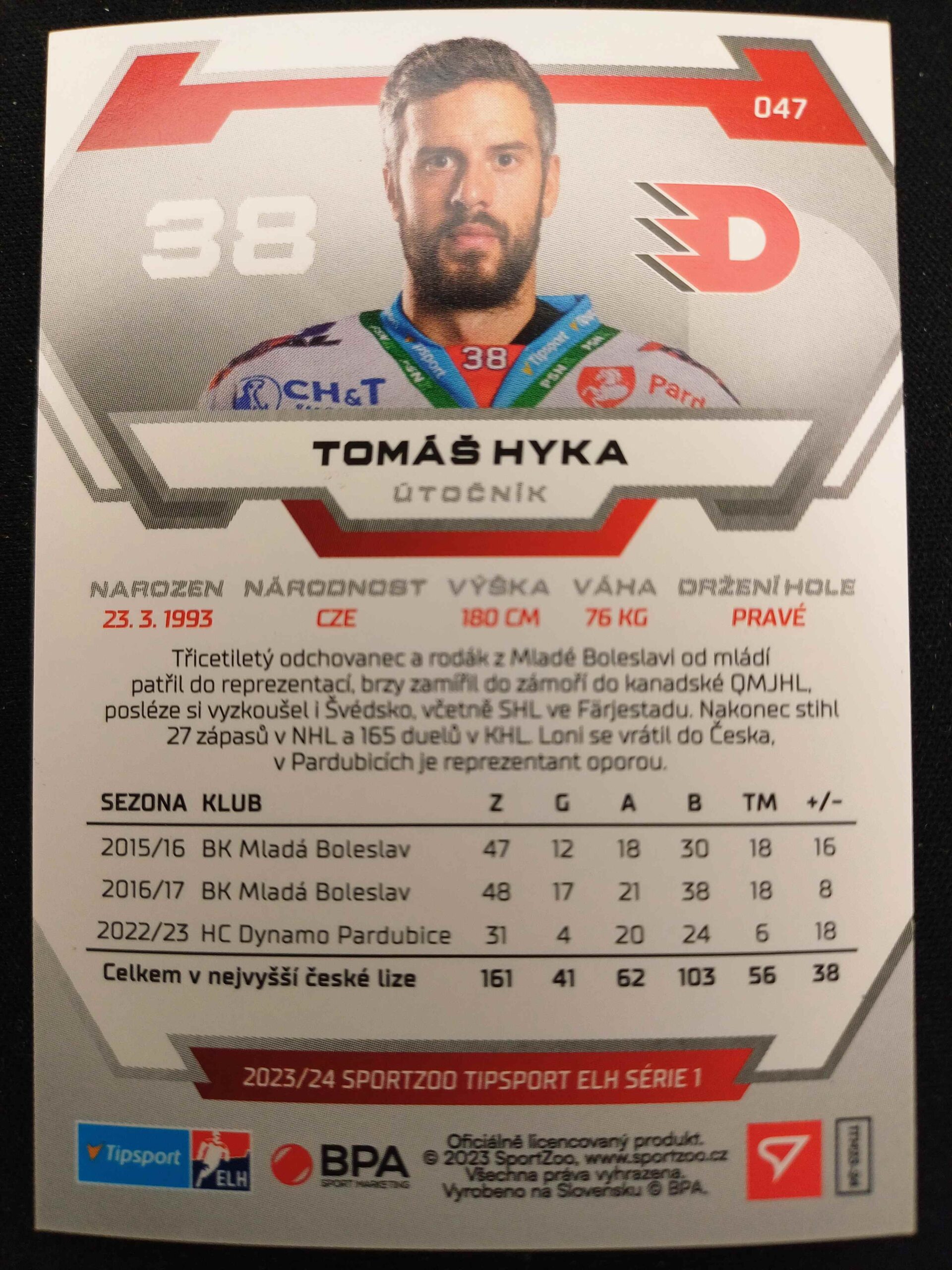 Sběratelská karta 2023/2024 Sportzoo Serie 1 Goal Light 47 Tomáš Hyka Paralel /60