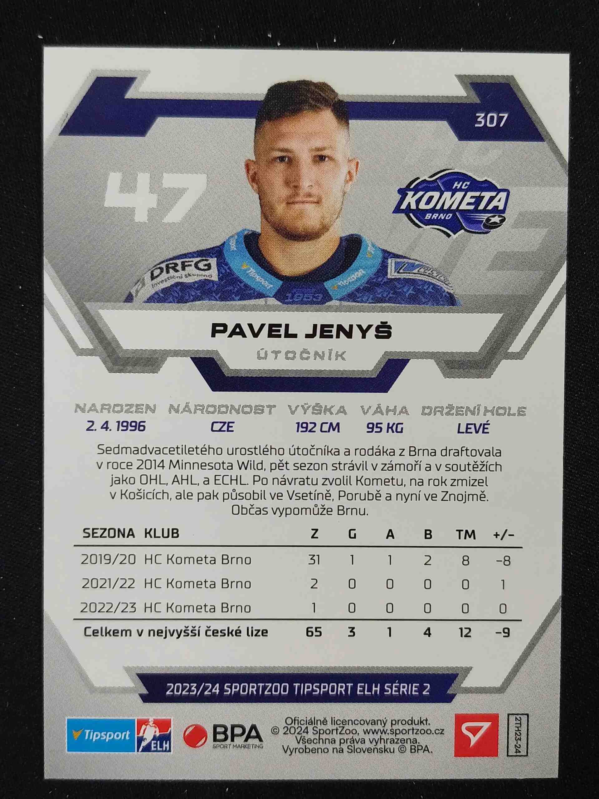 Sběratelská karta 2023/2024 Sportzoo Serie 2 Base 307 Pavel Jenyš