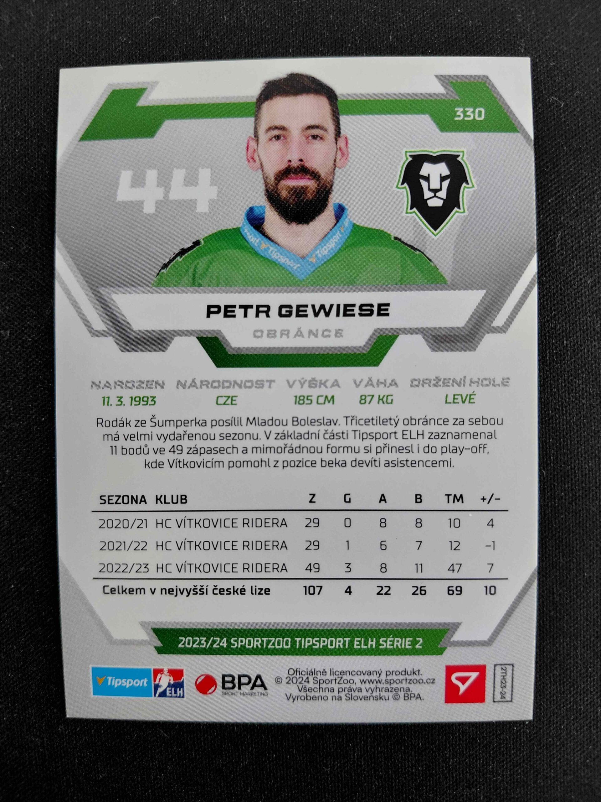 Sběratelská karta 2023/2024 Sportzoo Serie 2 Goal Light 330 Petr Gewiese Paralel /60