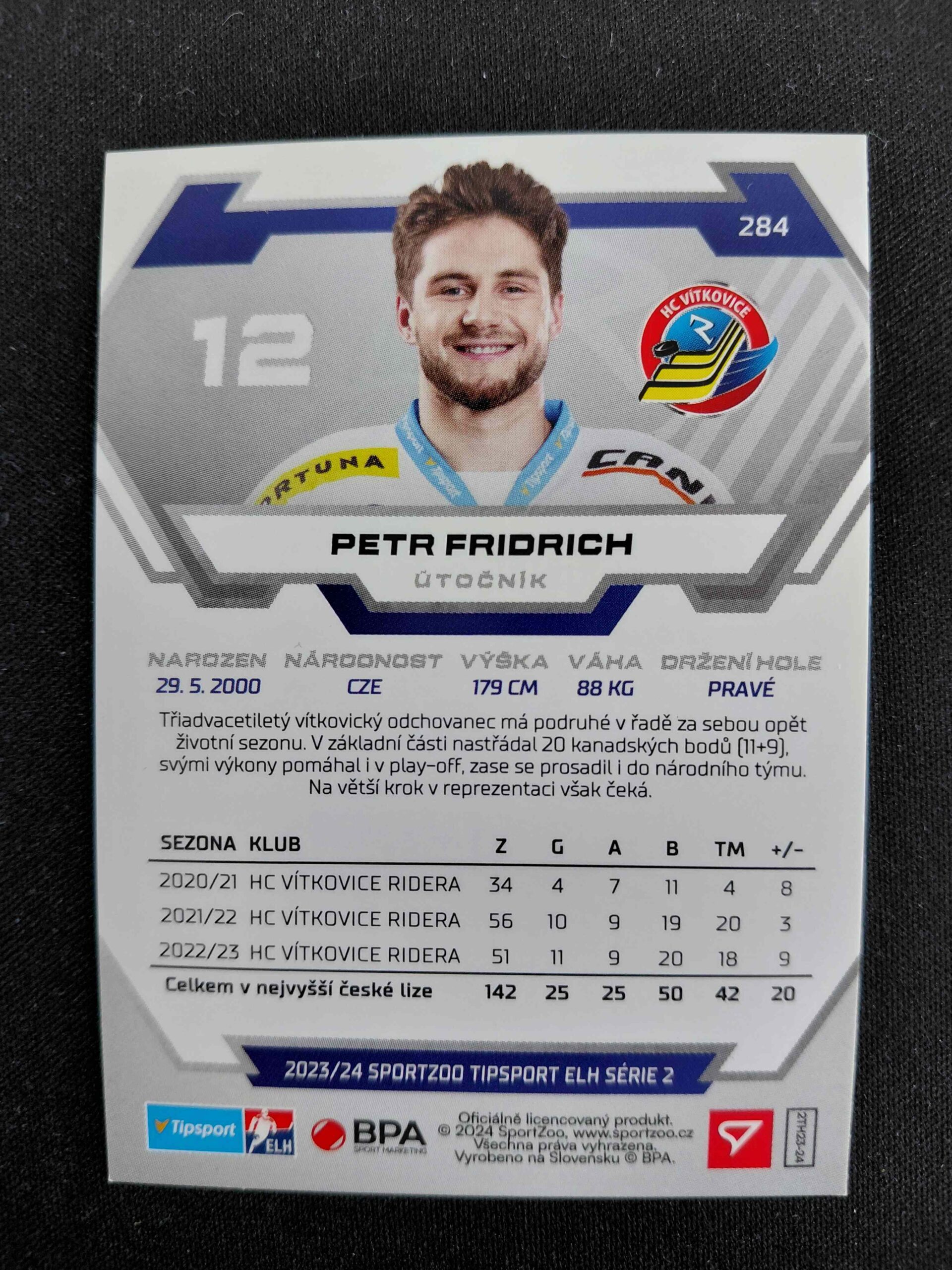 Sběratelská karta 2023/2024 Sportzoo Serie 2 Ice Reflection 284 Petr Fridrich Paralel /95