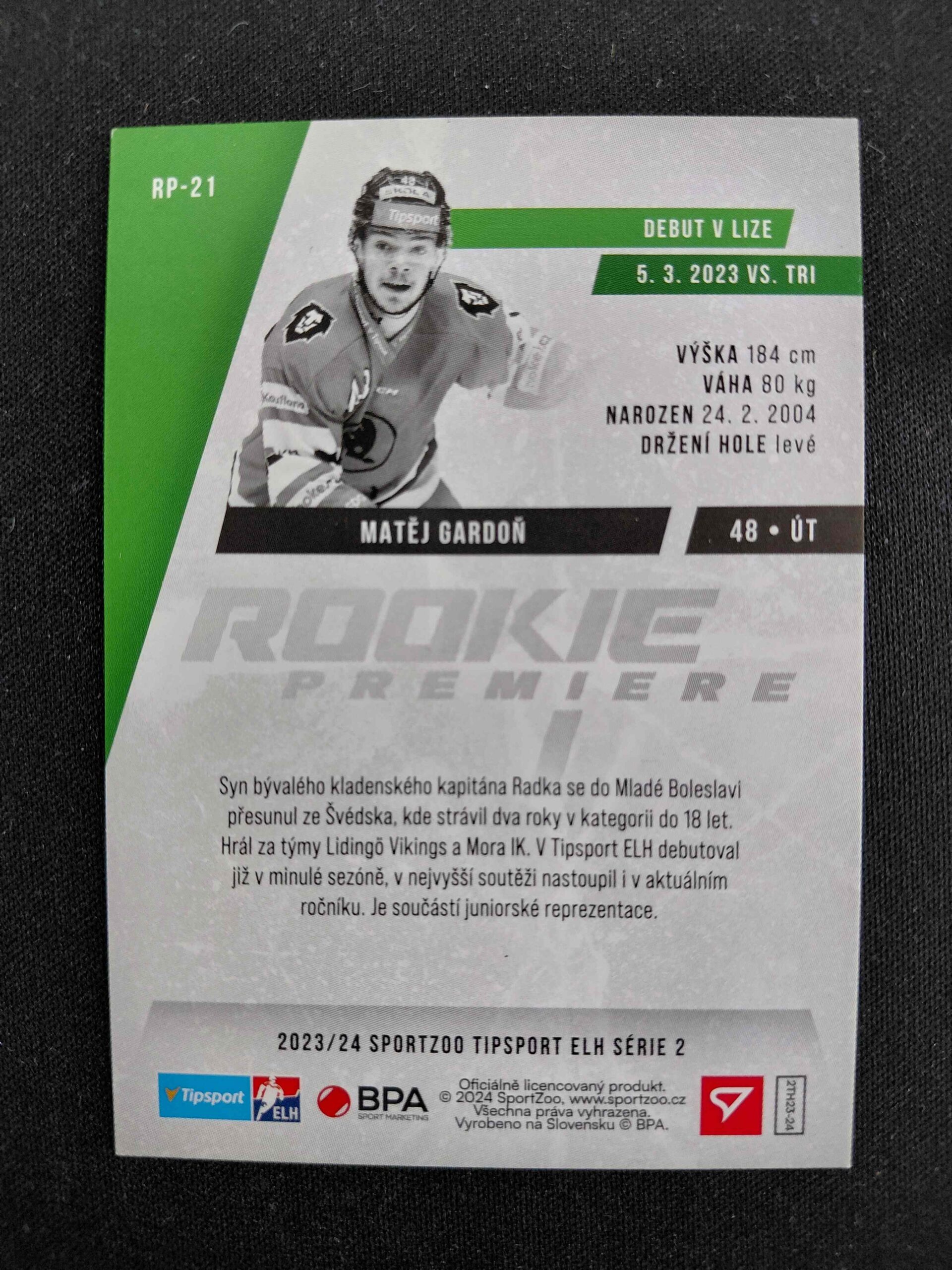 2023/2024 Sportzoo Serie 2 Rookie Premiere Showtime RP-21 Matěj Gardoň Inzert 10/99
