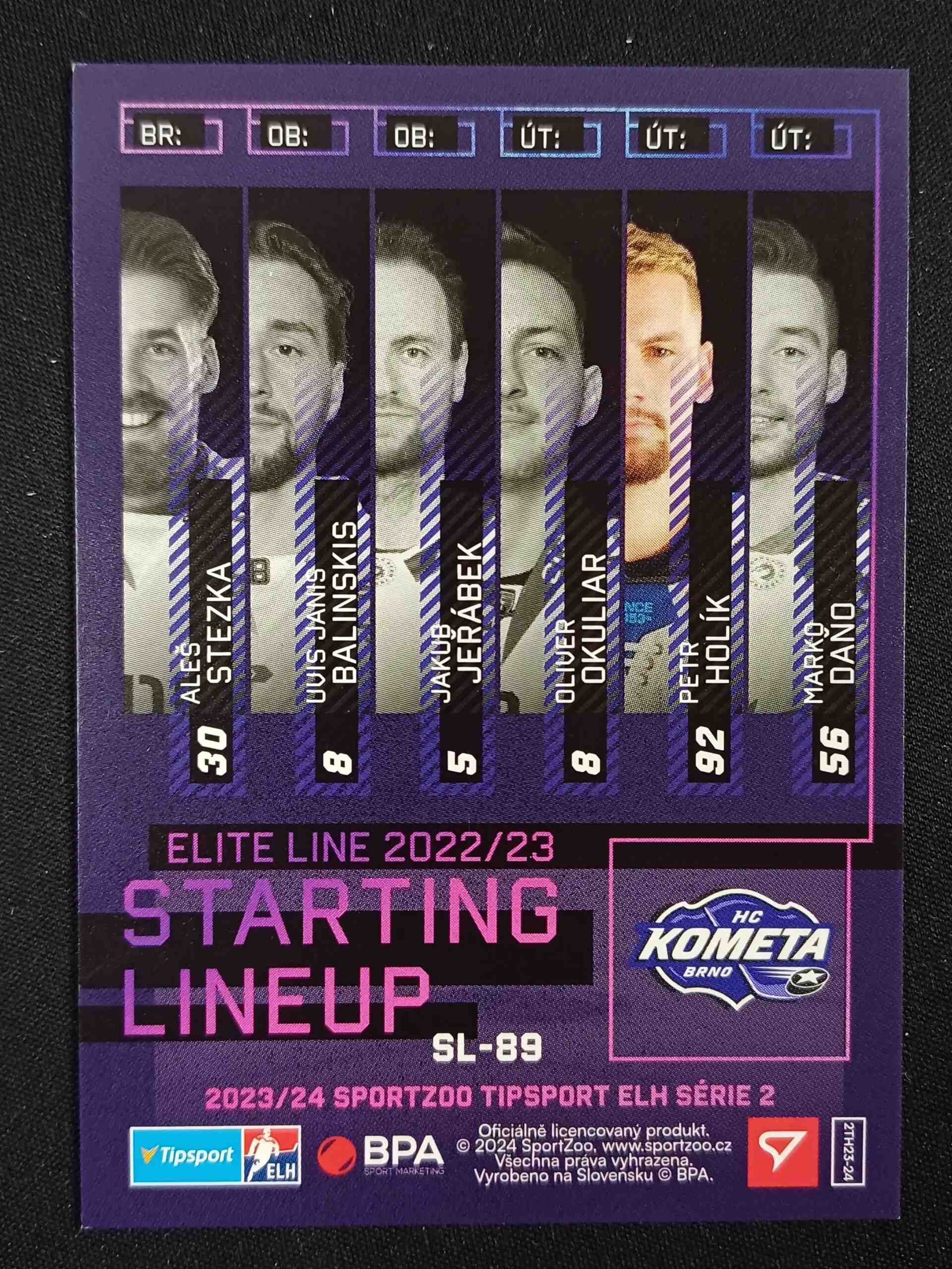 Sběratelská karta 2023/2024 Sportzoo Serie 2 Starting Lineup SL-89 Petr Holík Inzert