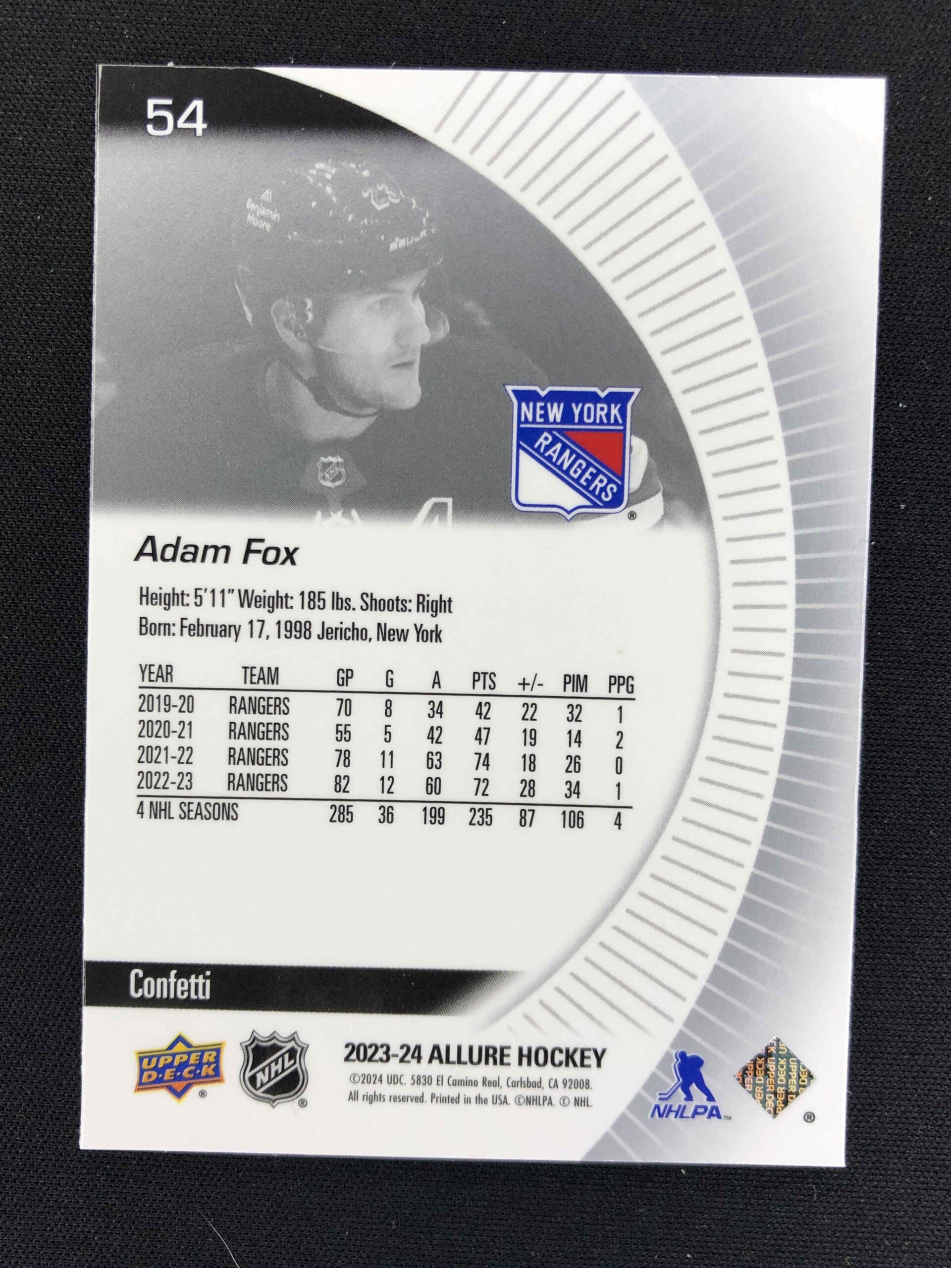 2023/2024 Upper Deck Allure Confetti 54 Adam Fox Paralel