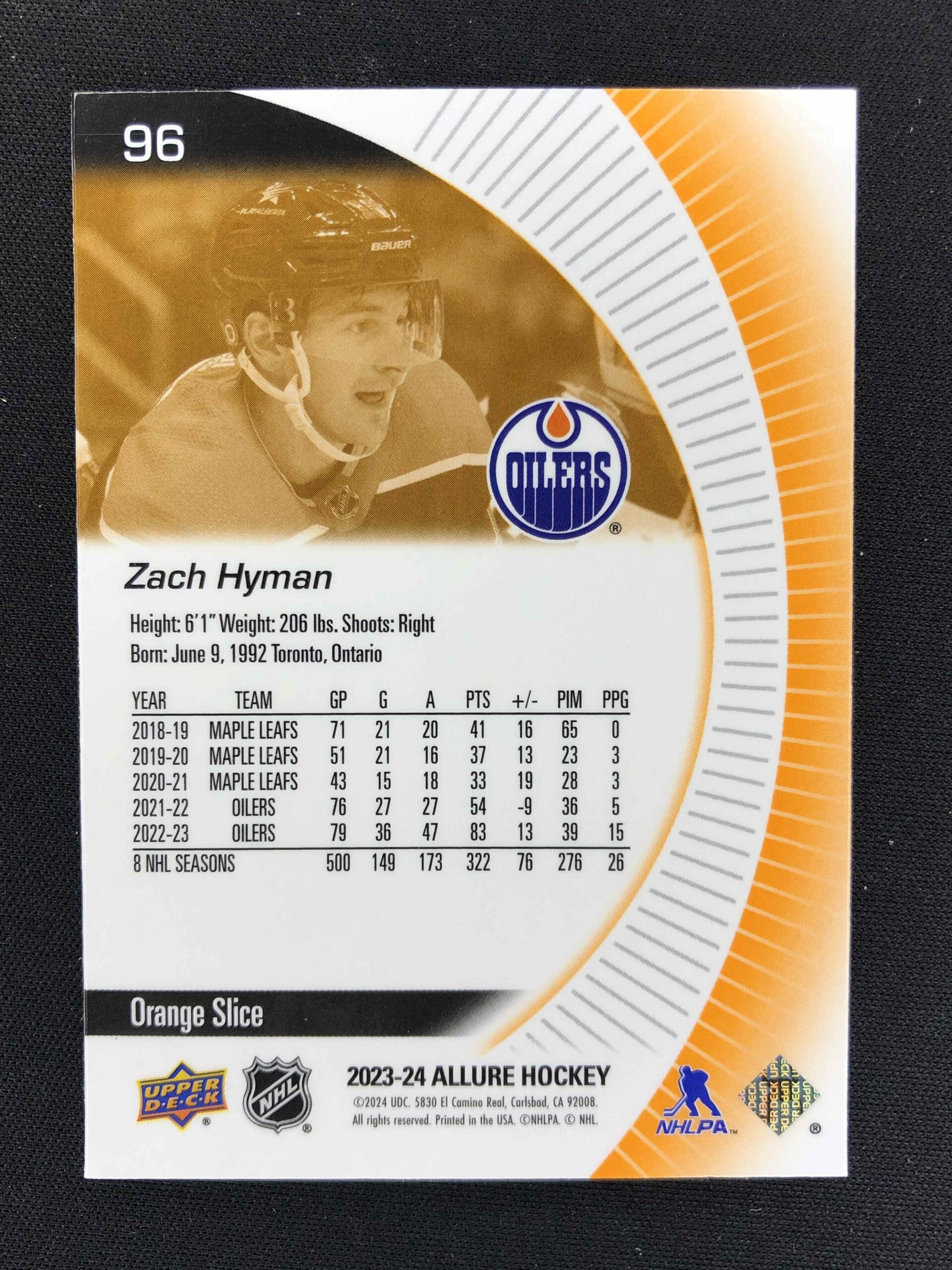 2023/2024 Upper Deck Allure Orange Slice 96 Zach Hyman Paralel