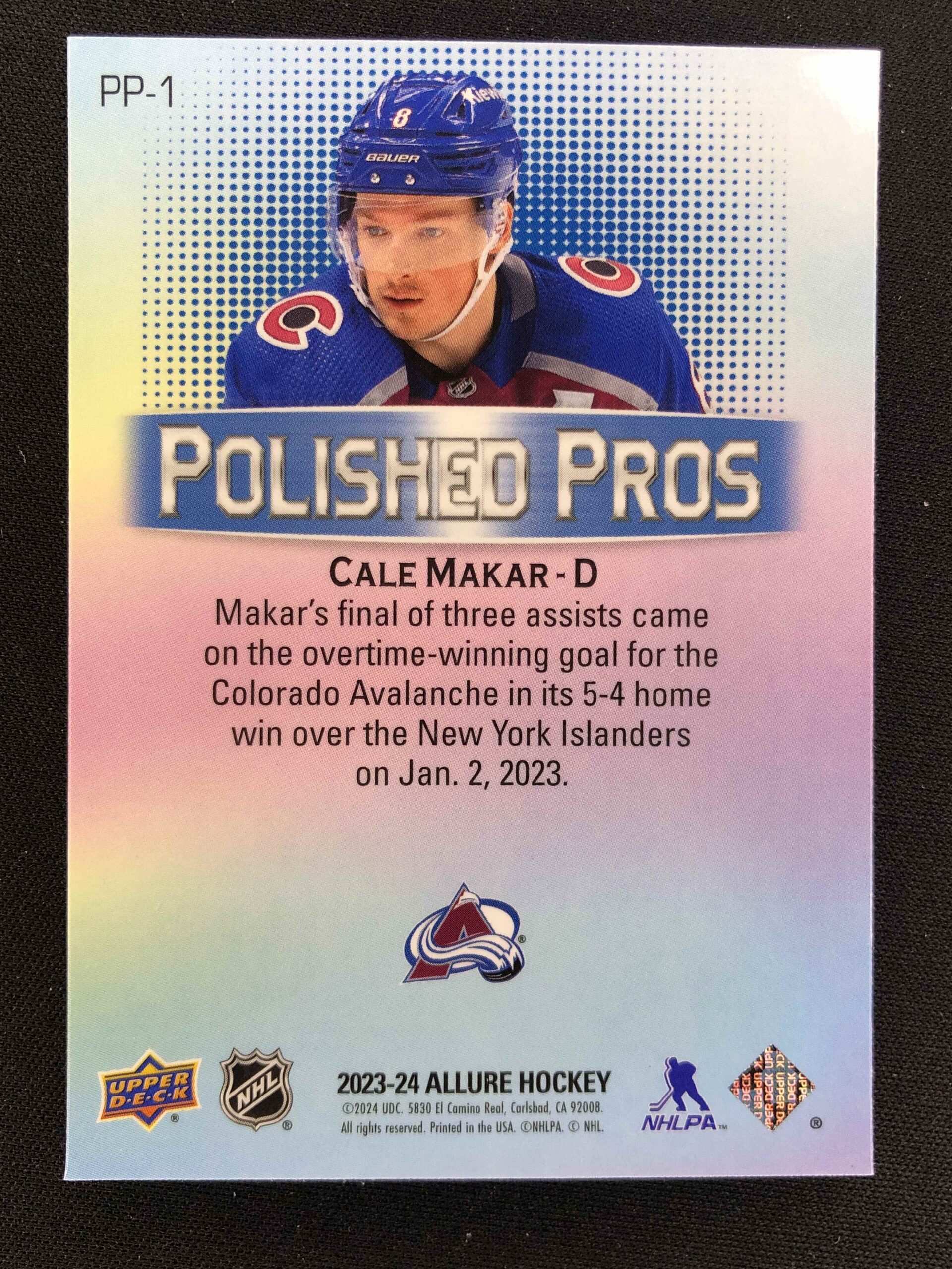 2023/2024 Upper Deck Allure Polished Pros PP-1 Cale Makar Inzert