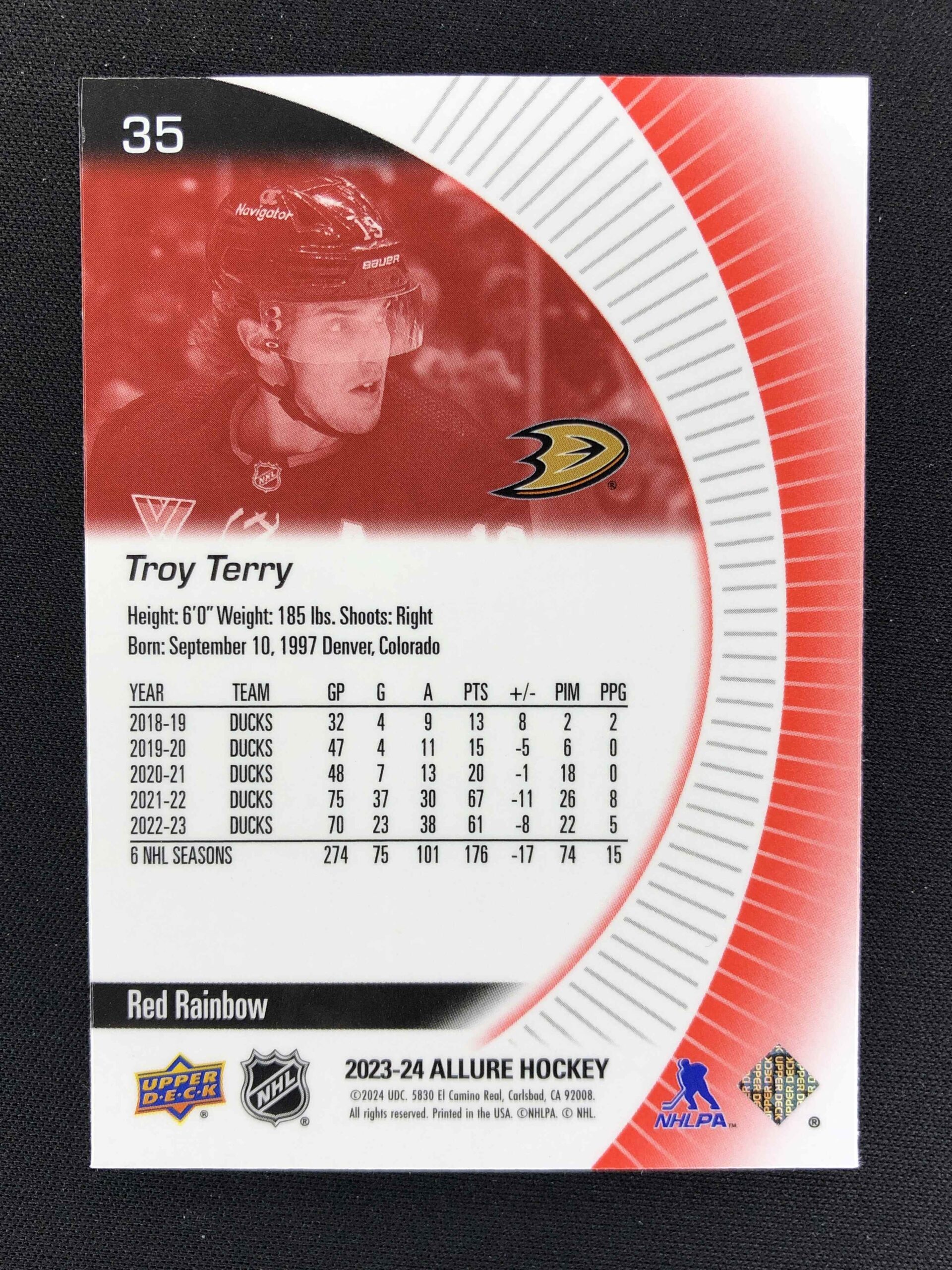 2023/2024 Upper Deck Allure Red Rainbow 35 Troy Terry Paralel