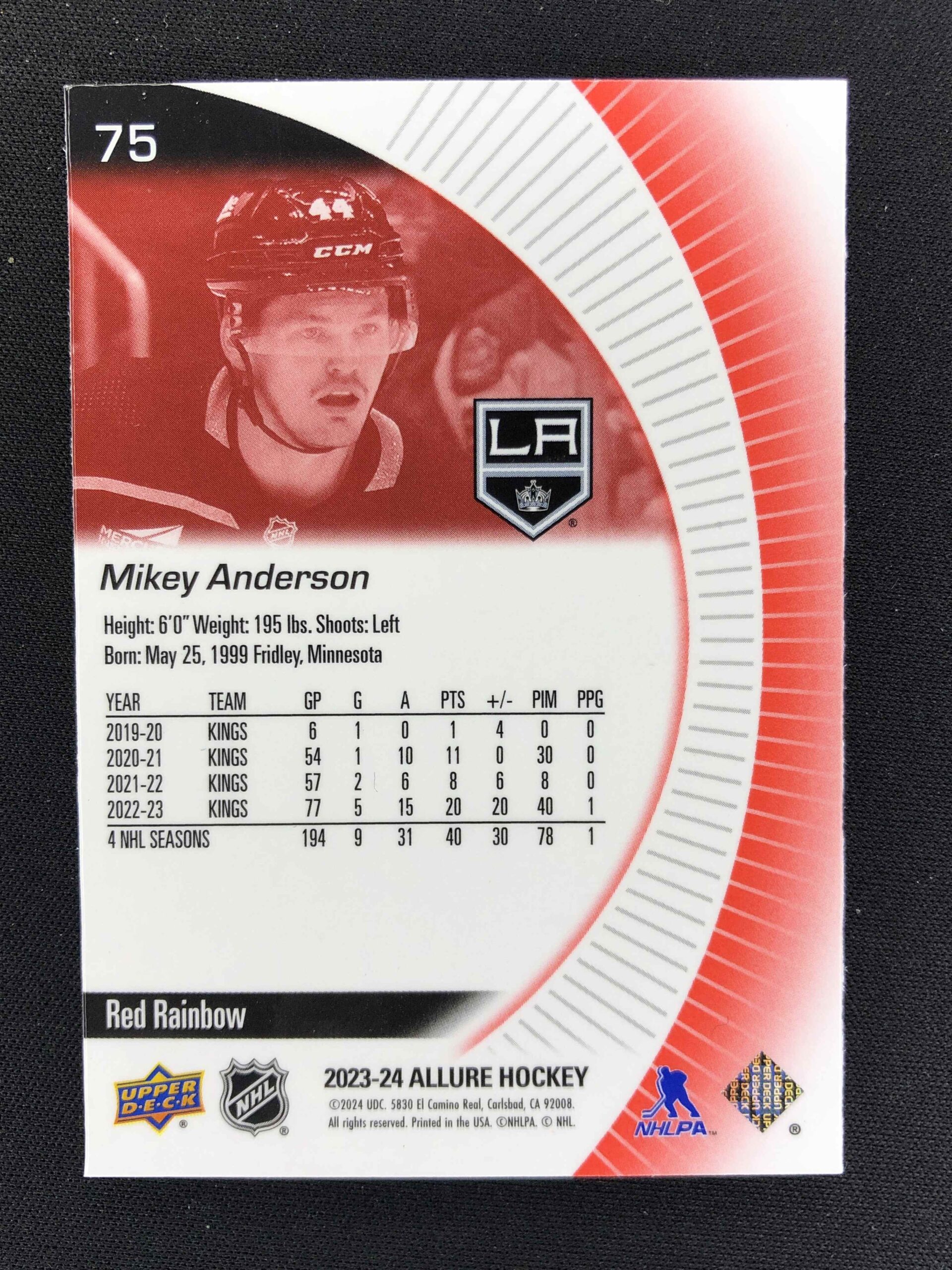 Sběratelská karta 2023/2024 Upper Deck Allure Red Rainbow 75 Mikey Anderson Paralel