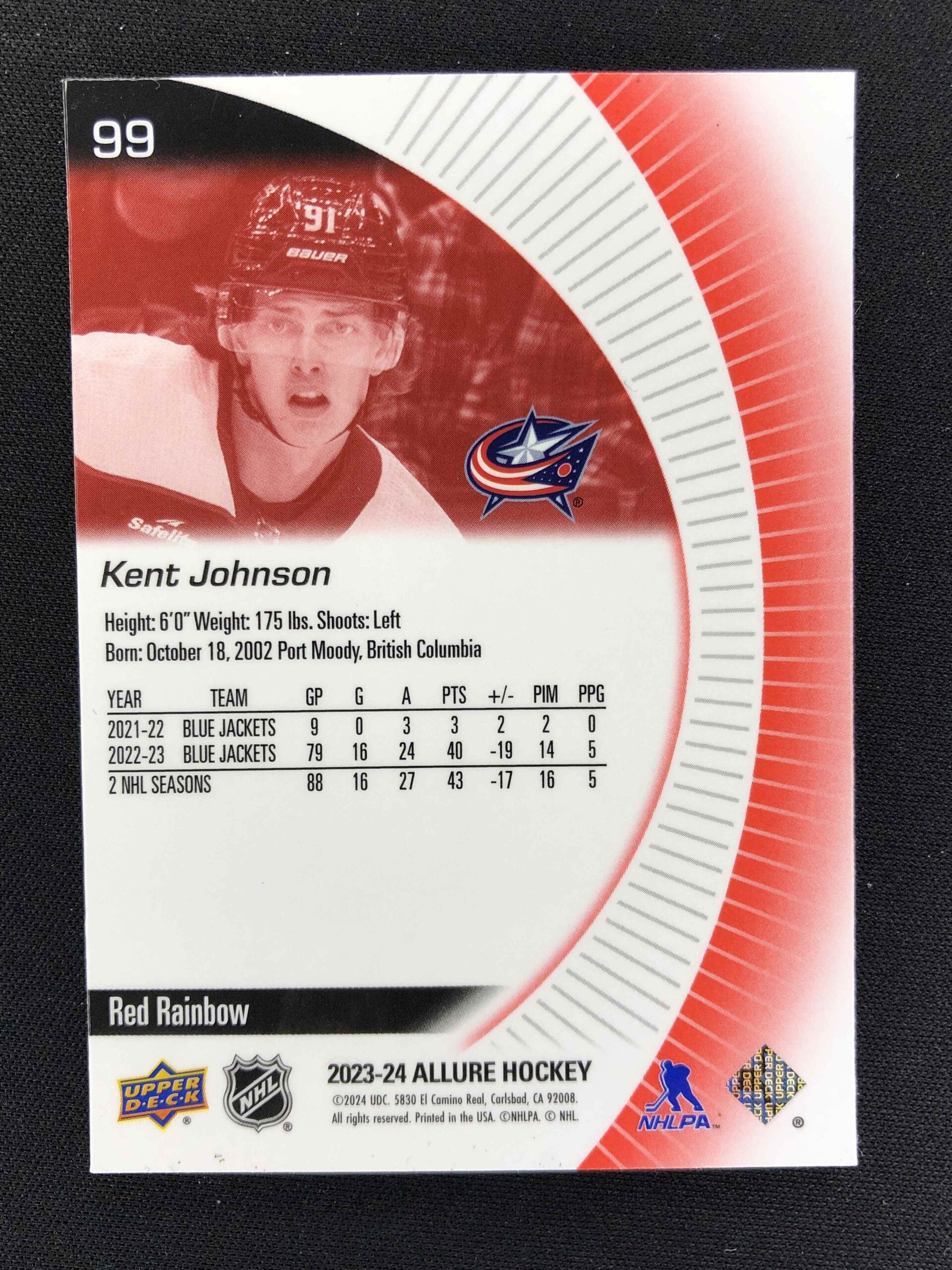 Sběratelská karta 2023/2024 Upper Deck Allure Red Rainbow 99 Kent Johnson Paralel