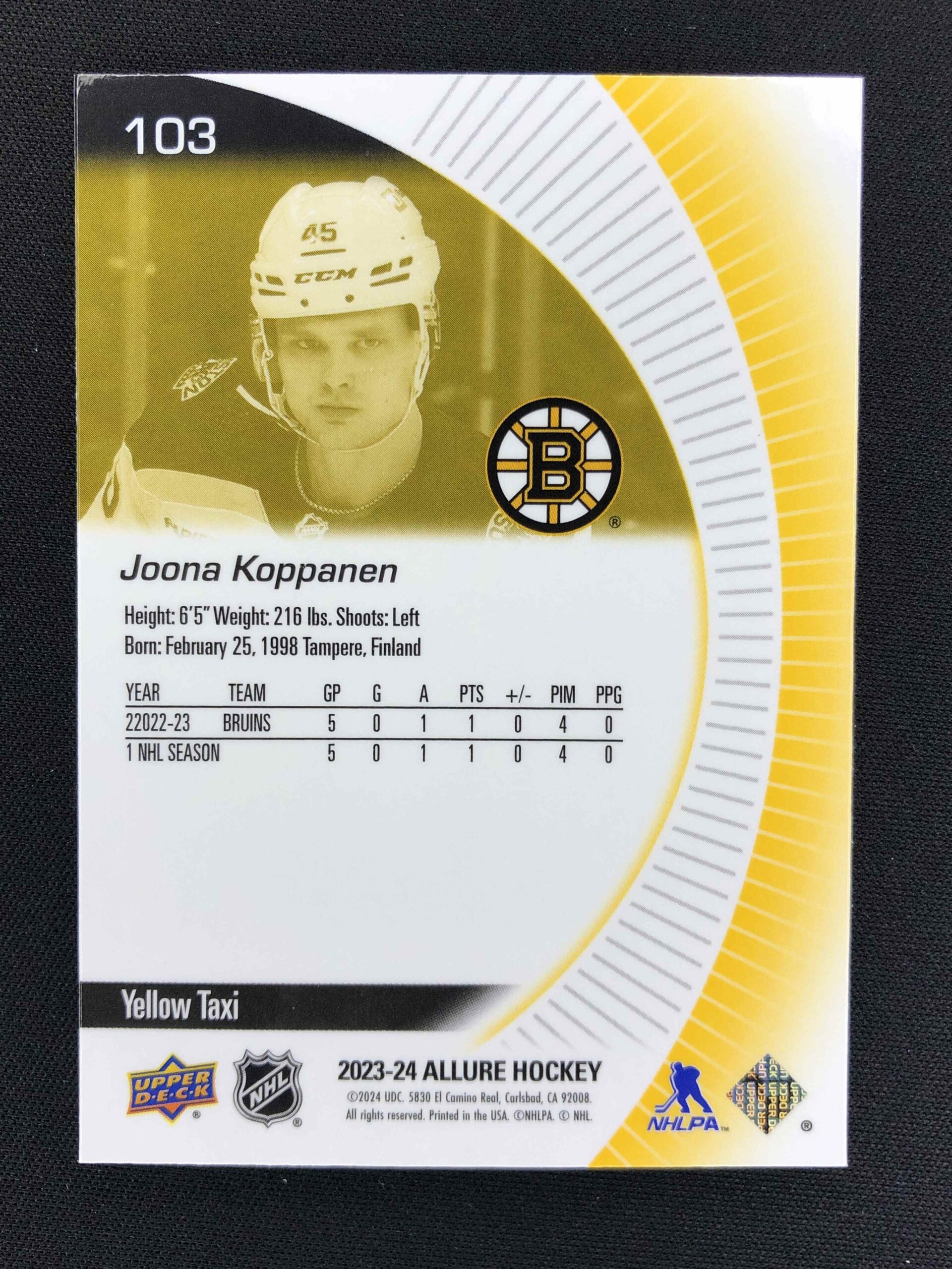 Sběratelská karta 2023/2024 Upper Deck Allure Yellow Taxi 103 Joona Koppanen Paralel