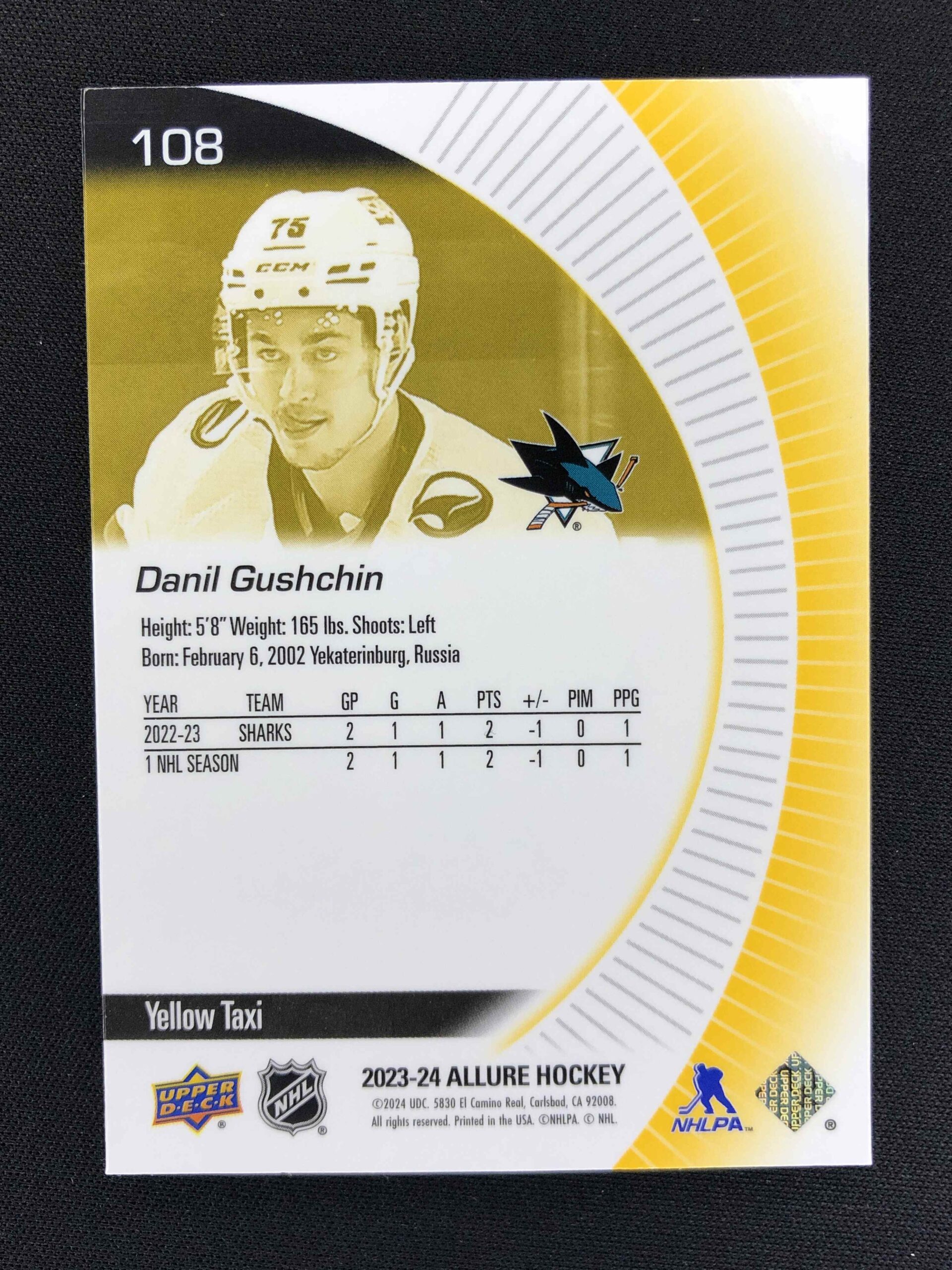 Sběratelská karta 2023/2024 Upper Deck Allure Yellow Taxi 108 Danil Gushchin Paralel