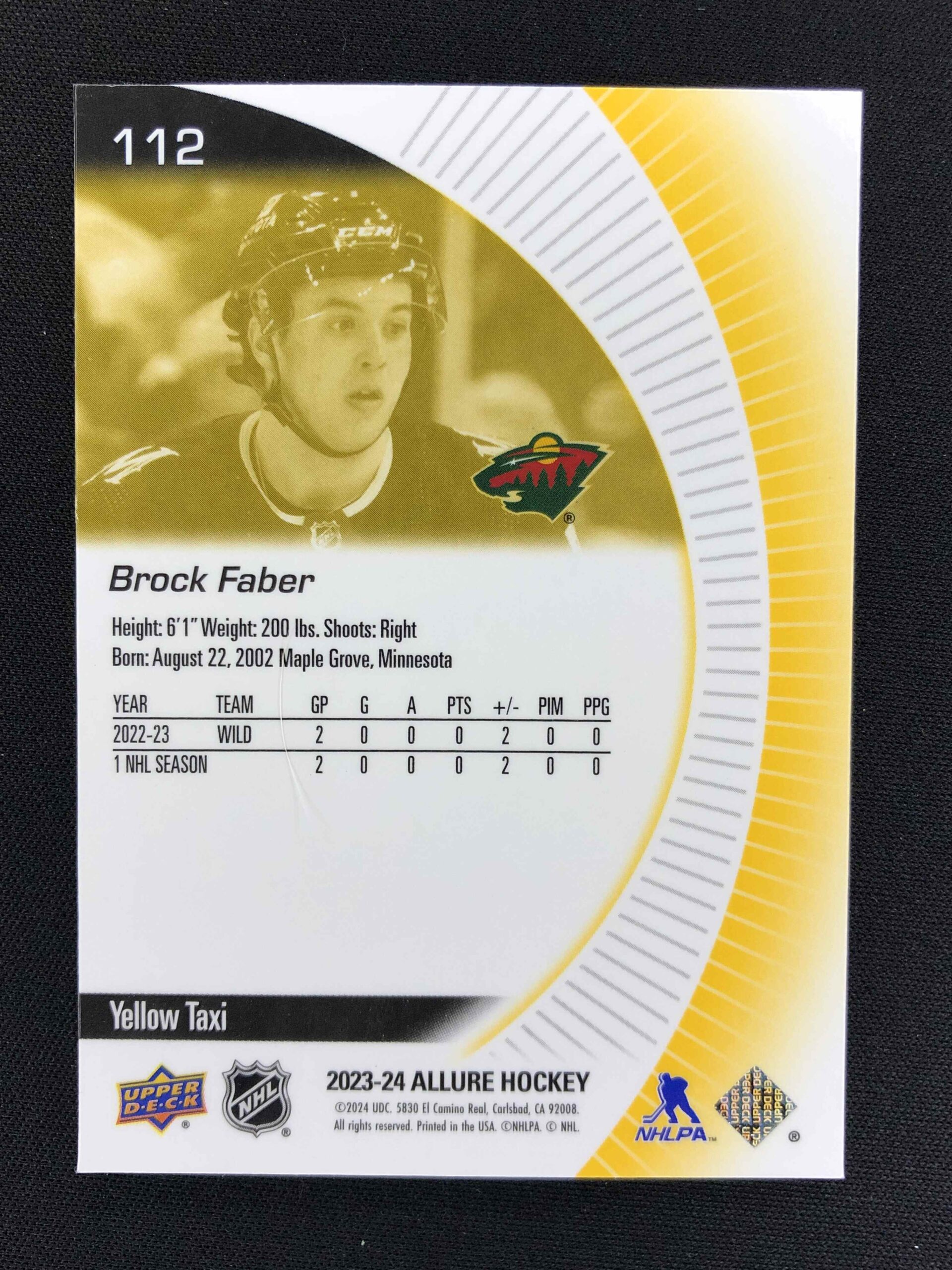 2023/2024 Upper Deck Allure Yellow Taxi 112 Brock Faber Paralel