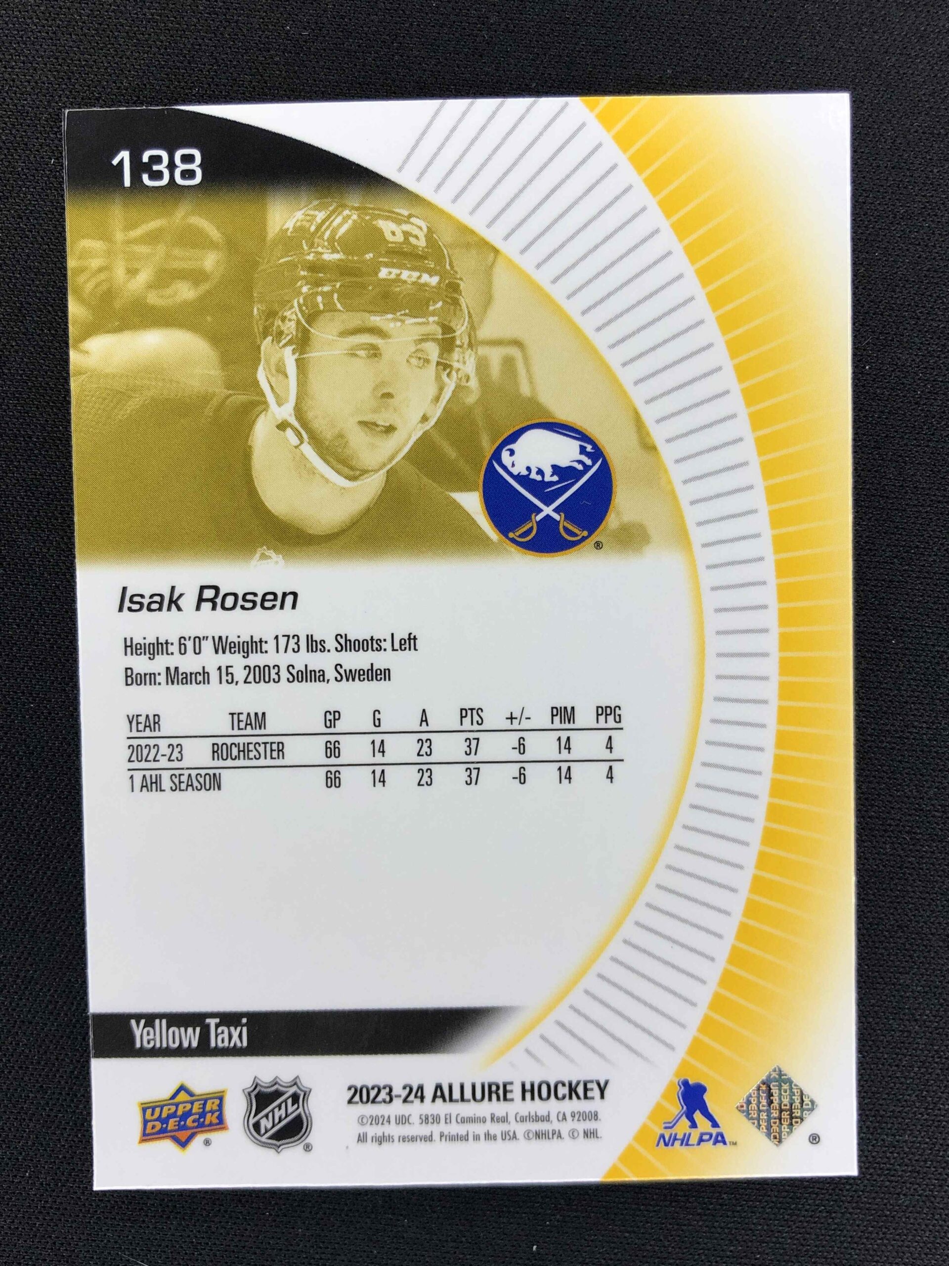 Sběratelská karta 2023/2024 Upper Deck Allure Yellow Taxi 138 Isak Rosen Paralel