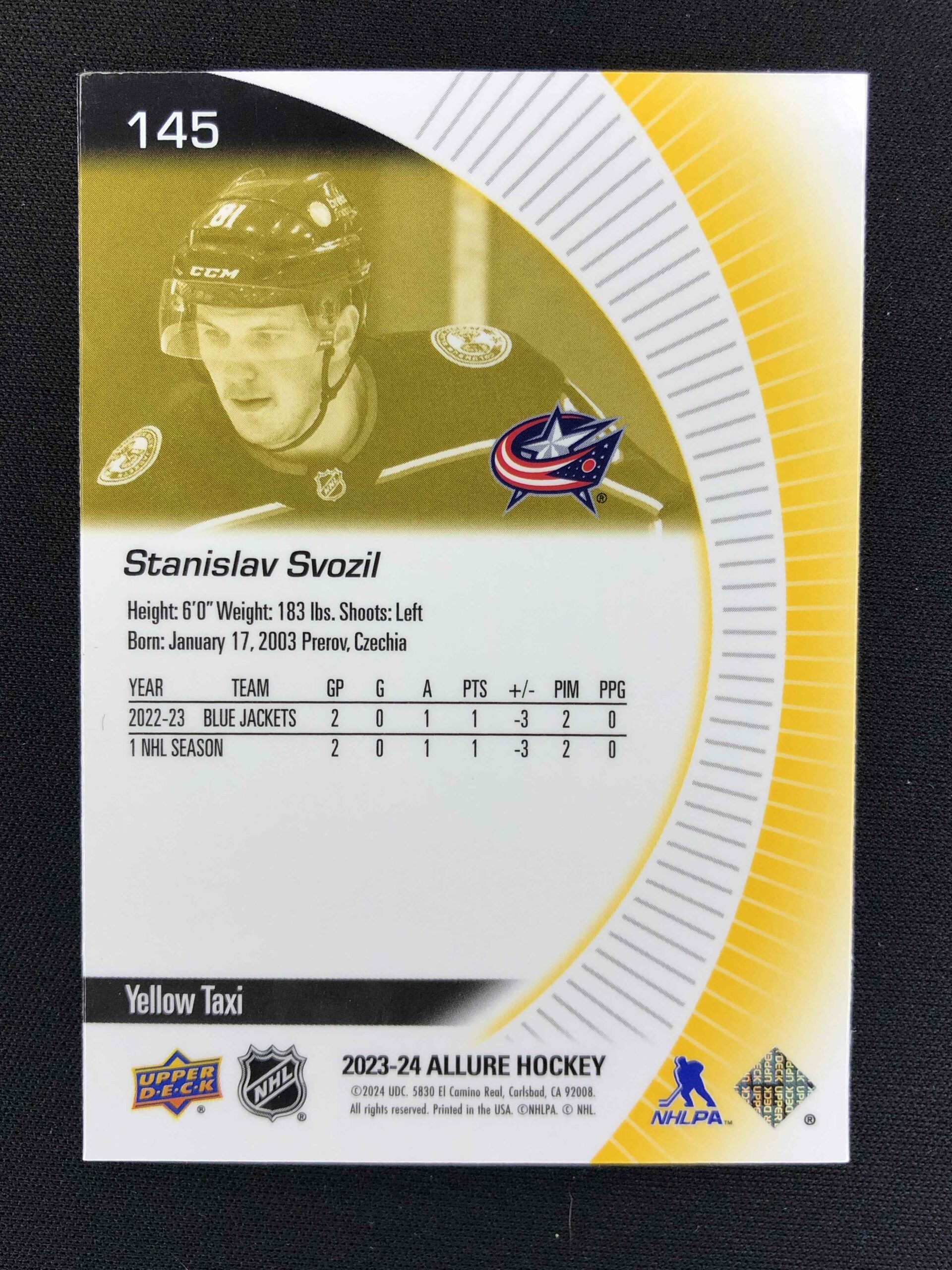 Sběratelská karta 2023/2024 Upper Deck Allure Yellow Taxi 145 Stanislav Svozil Paralel