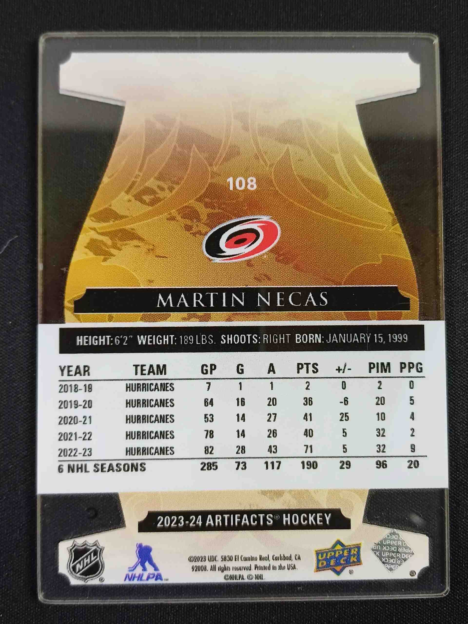 Sběratelská karta 2023/2024 Upper Deck Artifacts Plexi 108 Martin Necas Paralel
