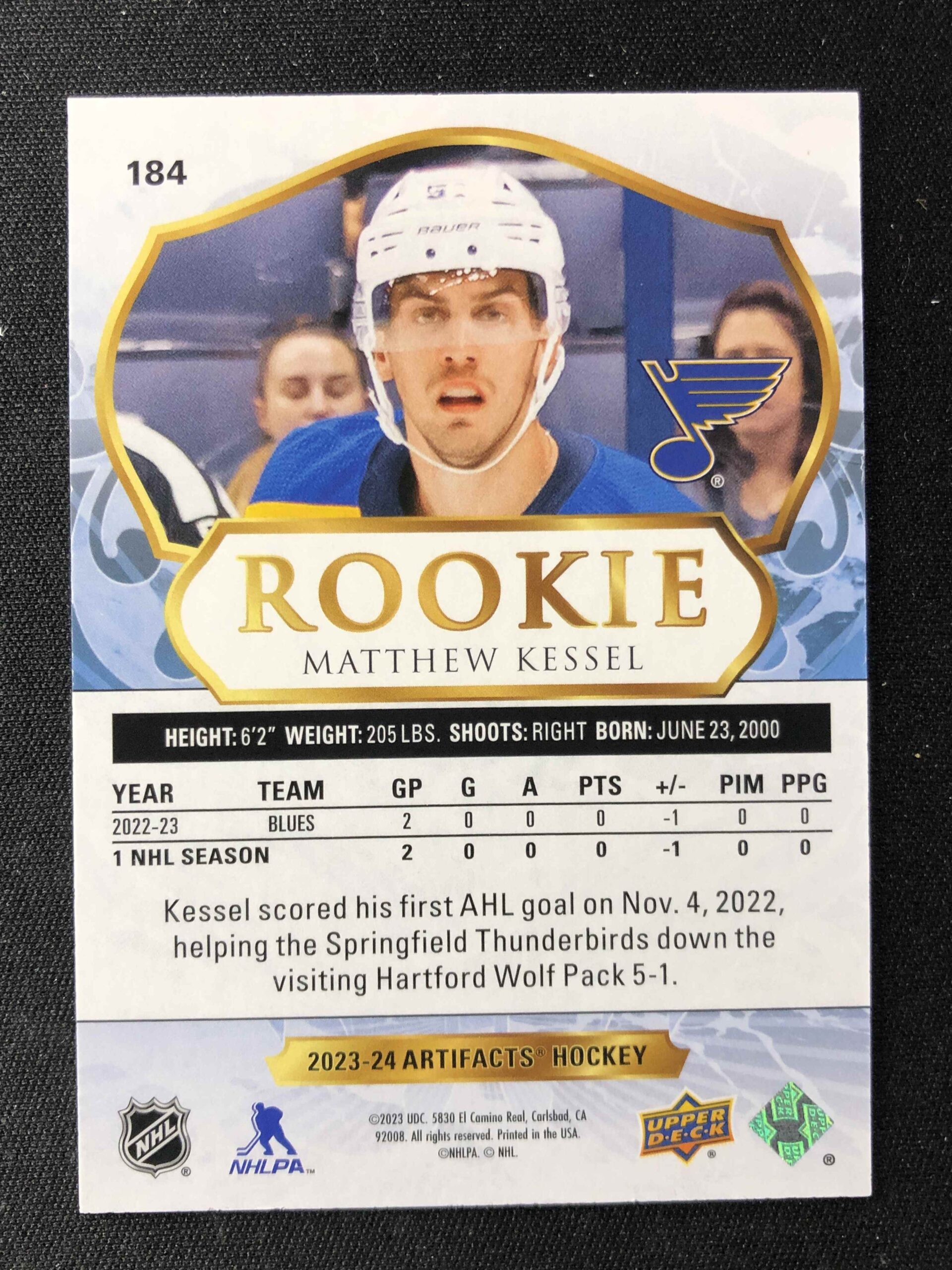 Sběratelská karta 2023/2024 Upper Deck Artifacts Turquoise 184 Matthew Kessel Paralel