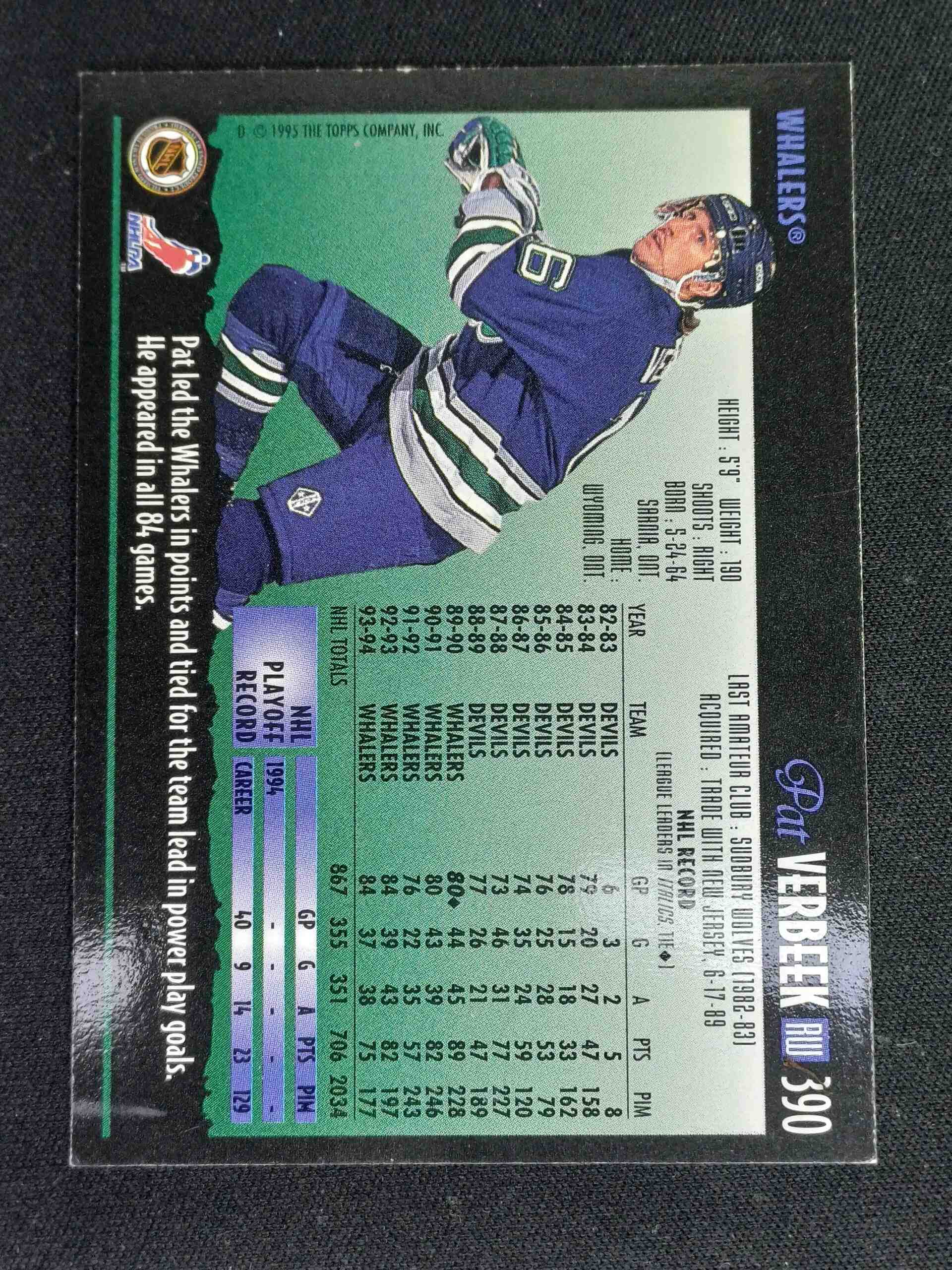 Sběratelská karta 1994/1995 Topps Premier Special Effects 390 Pat Verbeek Paralel