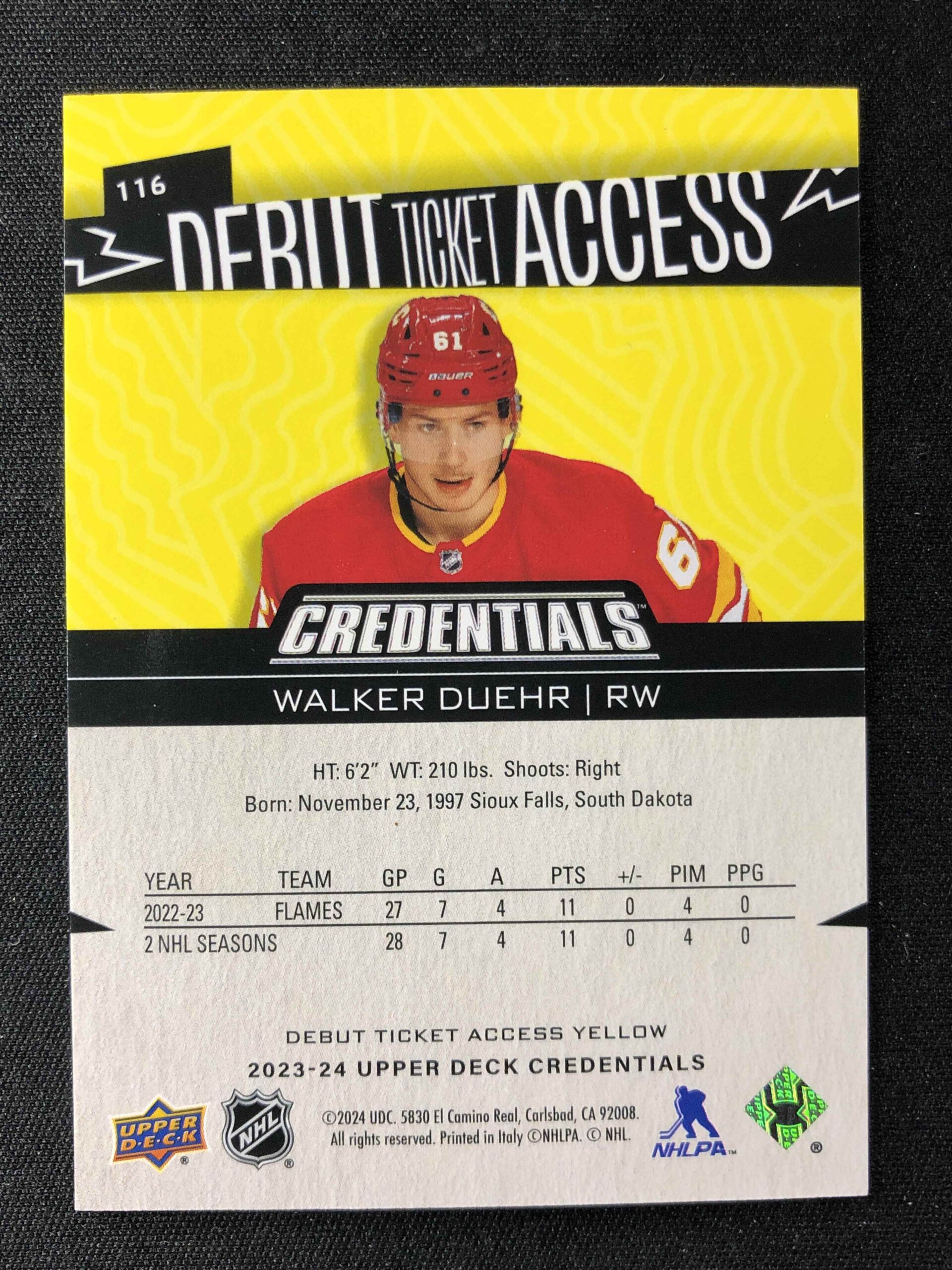 2023/2024 Upper Deck Credentials Debut Ticket Access Yellow 116 Walker Duehr Inzert