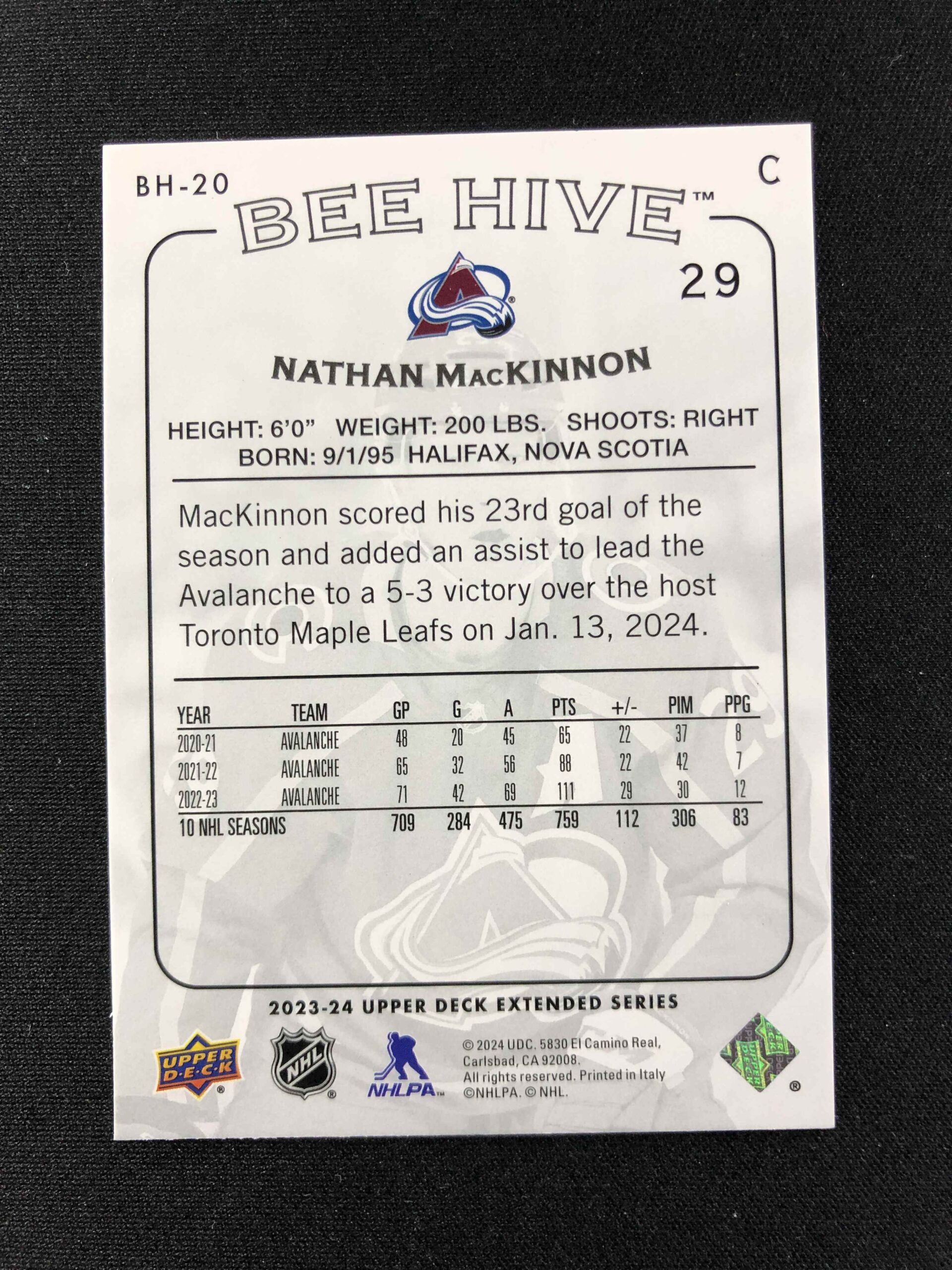 2023/2024 Upper Deck Extended Bee Hive BH-20 Nathan MacKinnon Inzert