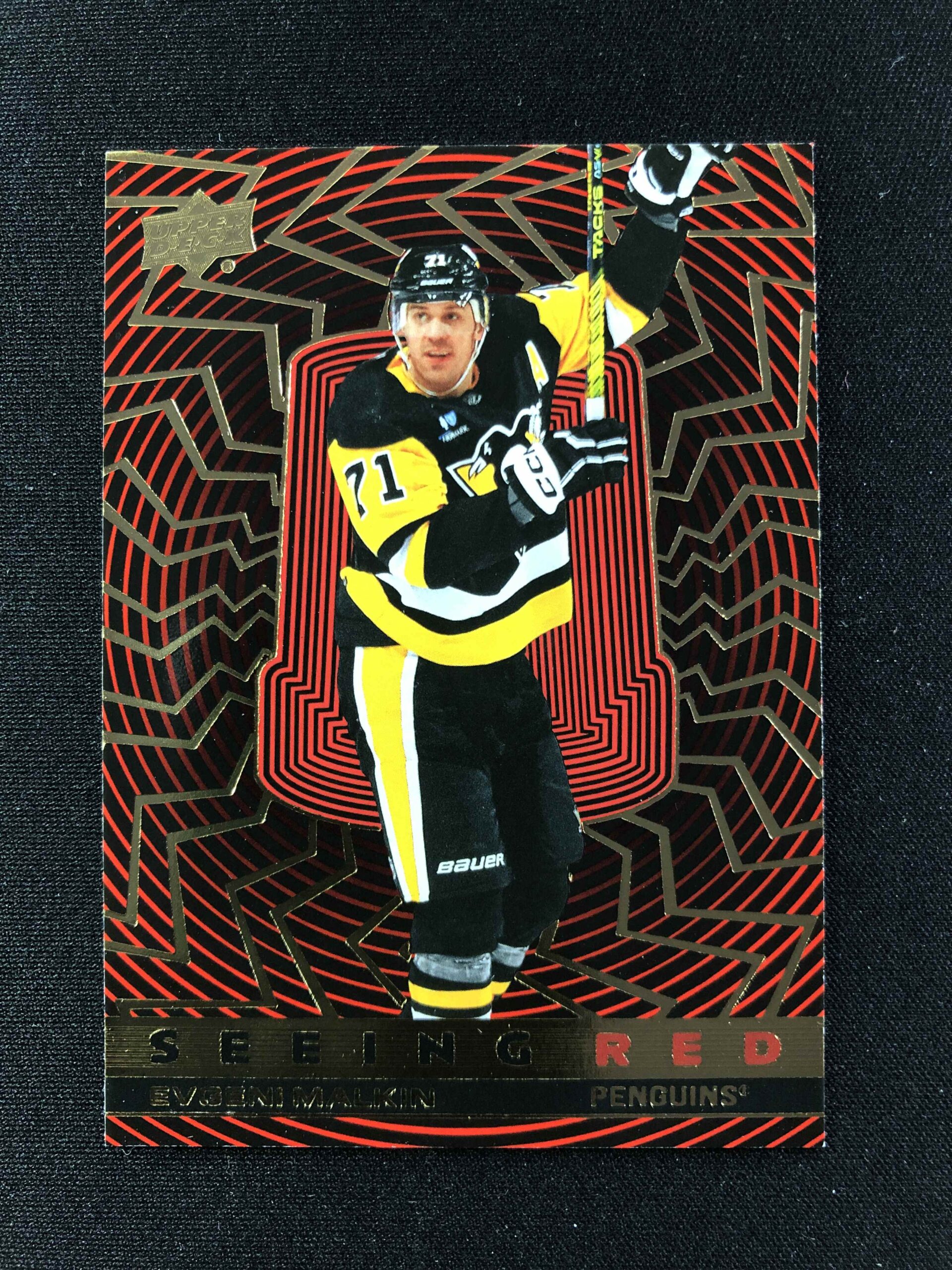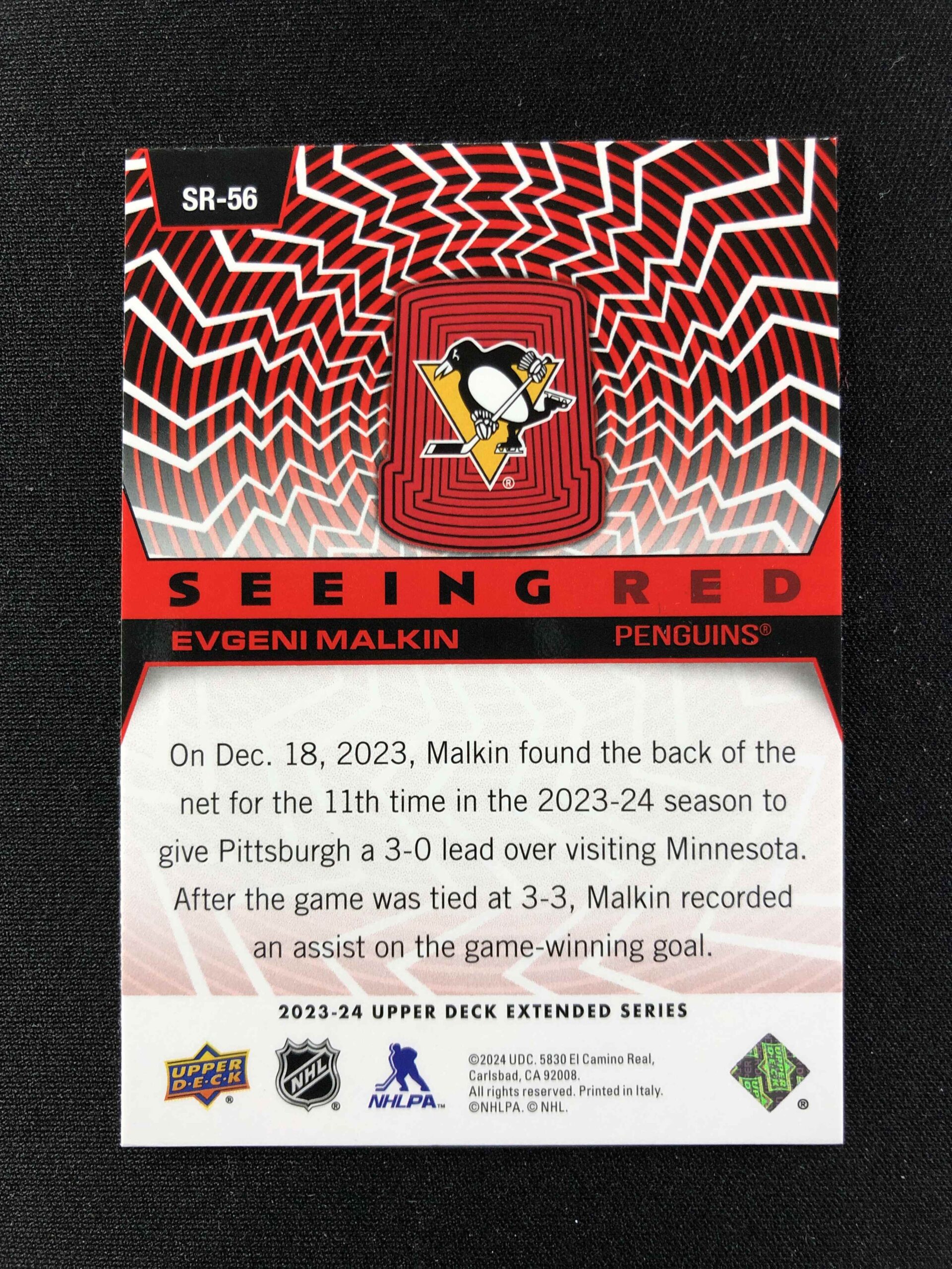 Sběratelská karta 2023/2024 Upper Deck Extended Seeing Red Gold Foil SR-56 Evgeni Malkin Inzert