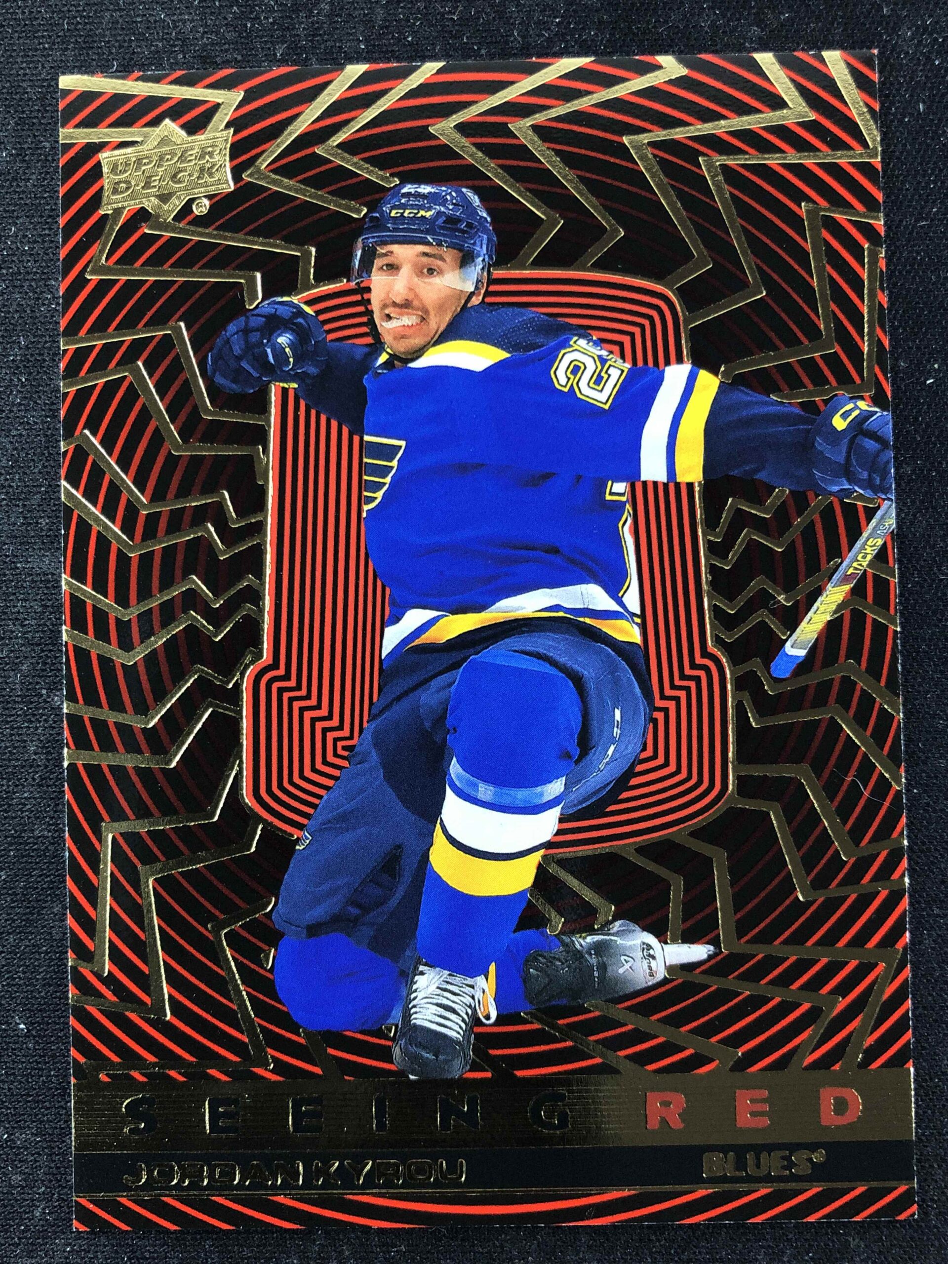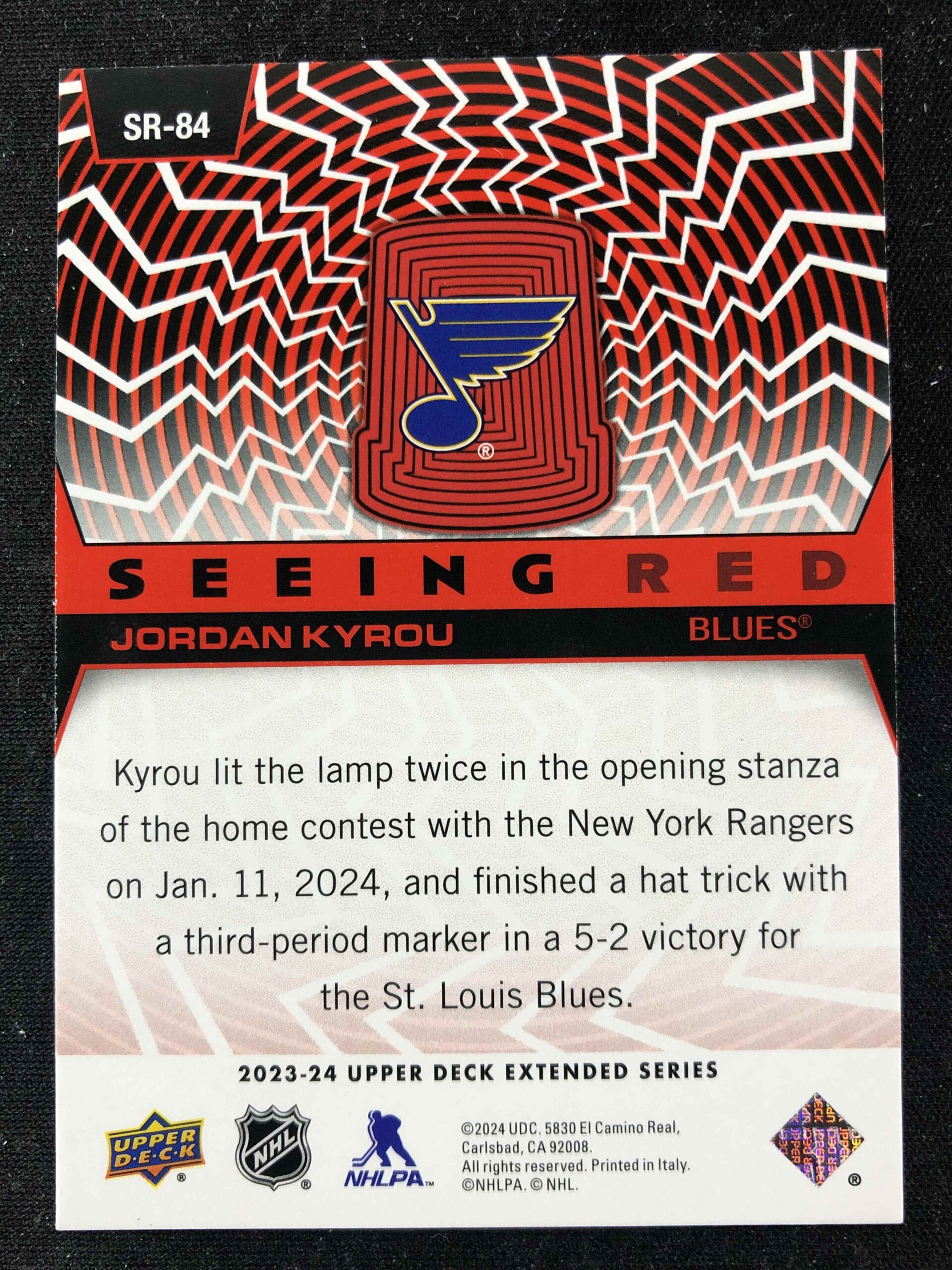 Sběratelská karta 2023/2024 Upper Deck Extended Seeing Red Gold Foil SR-84 Jordan Kyrou Inzert