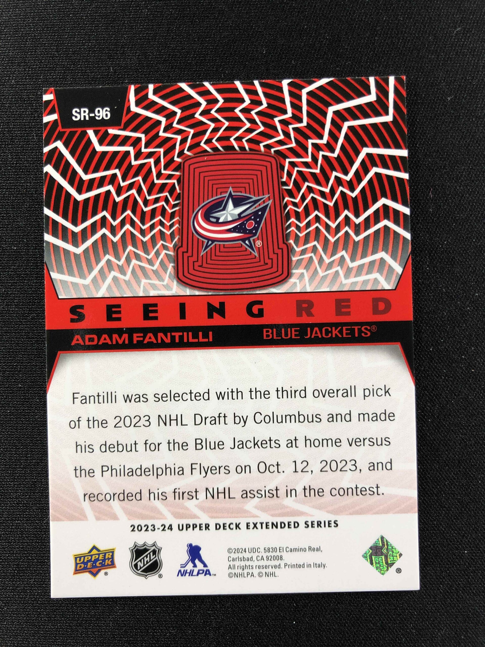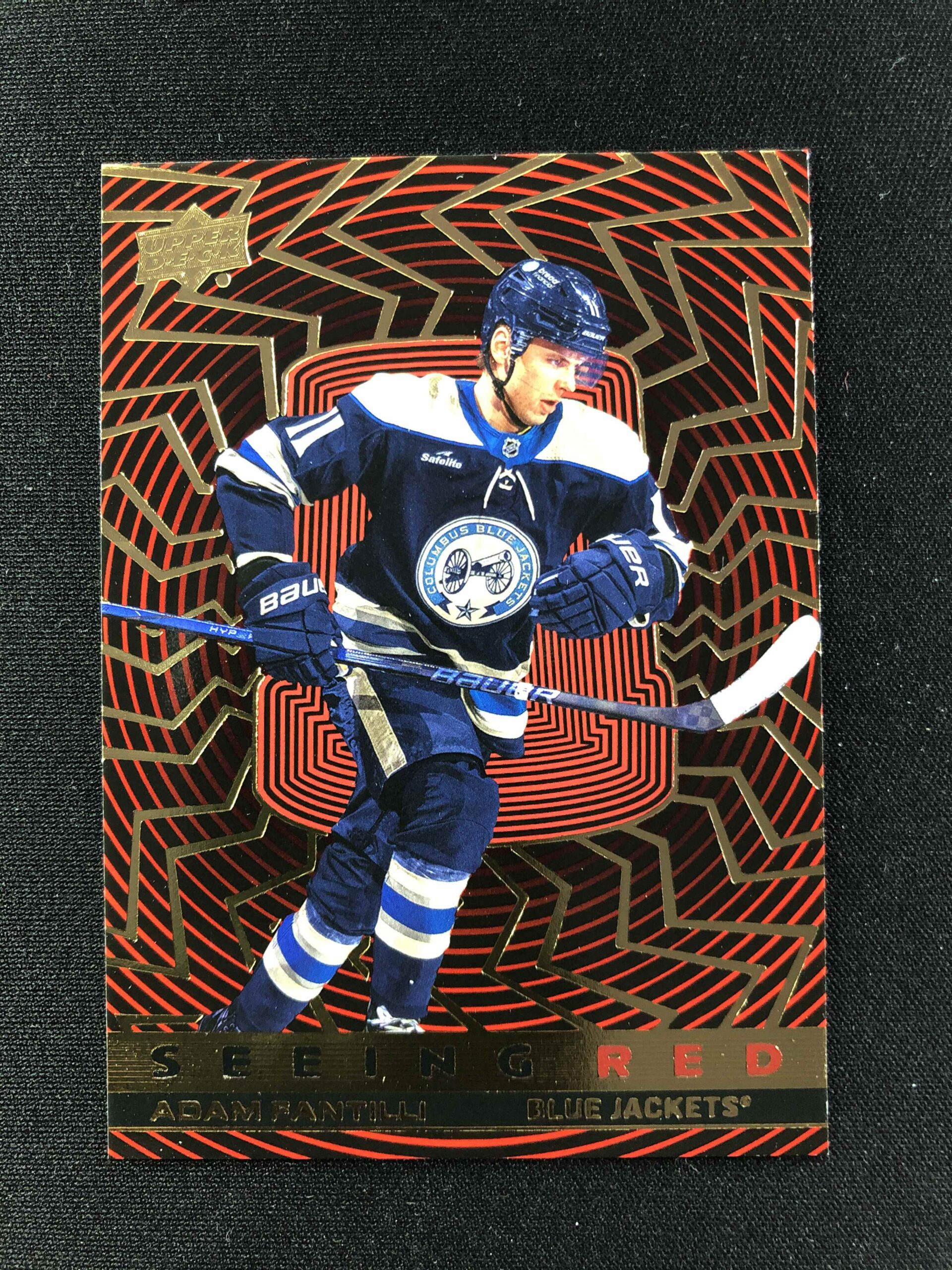 Sběratelská karta 2023/2024 Upper Deck Extended Seeing Red Gold Foil SR-96 Adam Fantilli Inzert