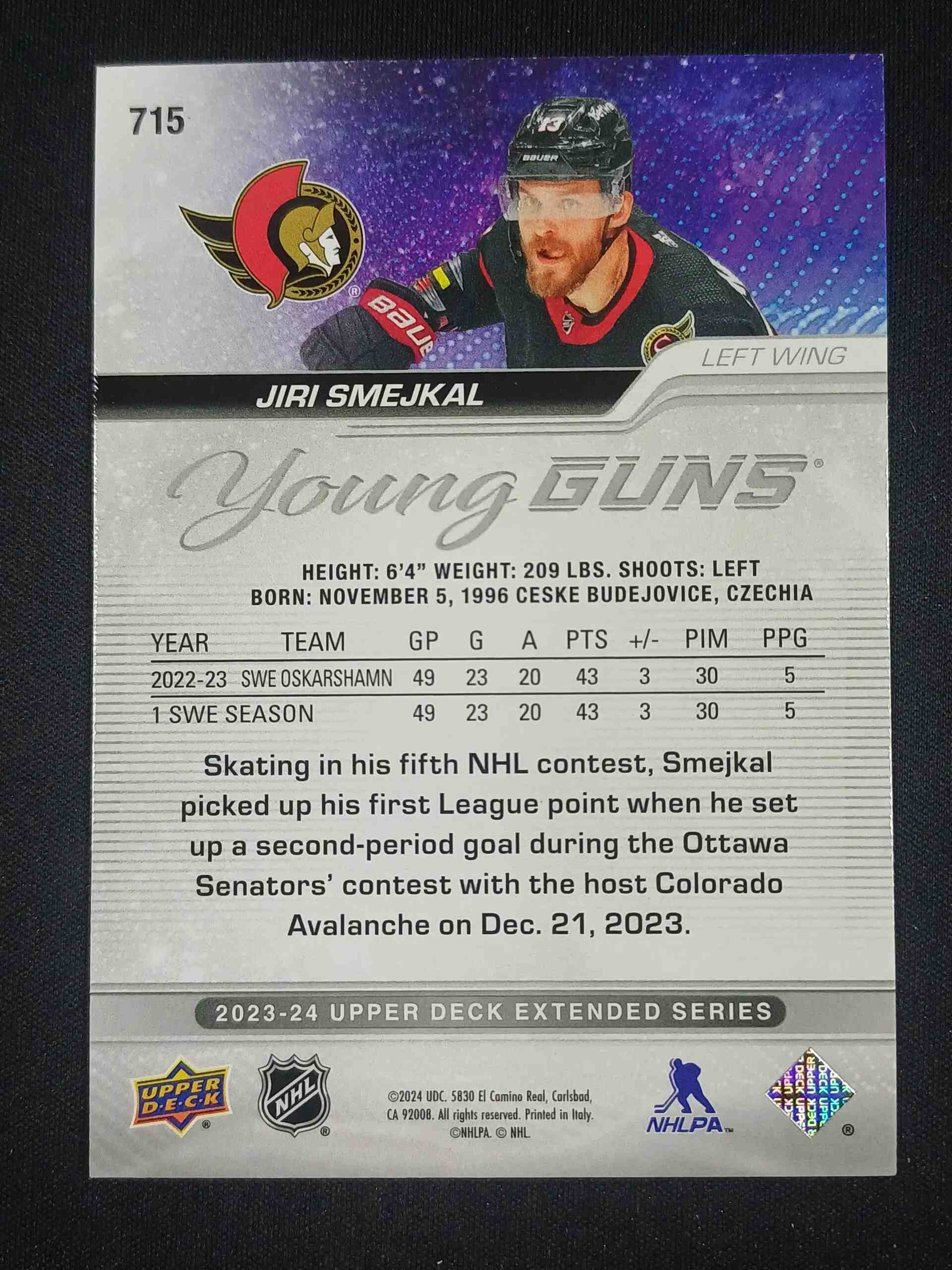Sběratelská karta 2023/2024 Upper Deck Extended Young Guns 715 Jiri Smejkal Inzert