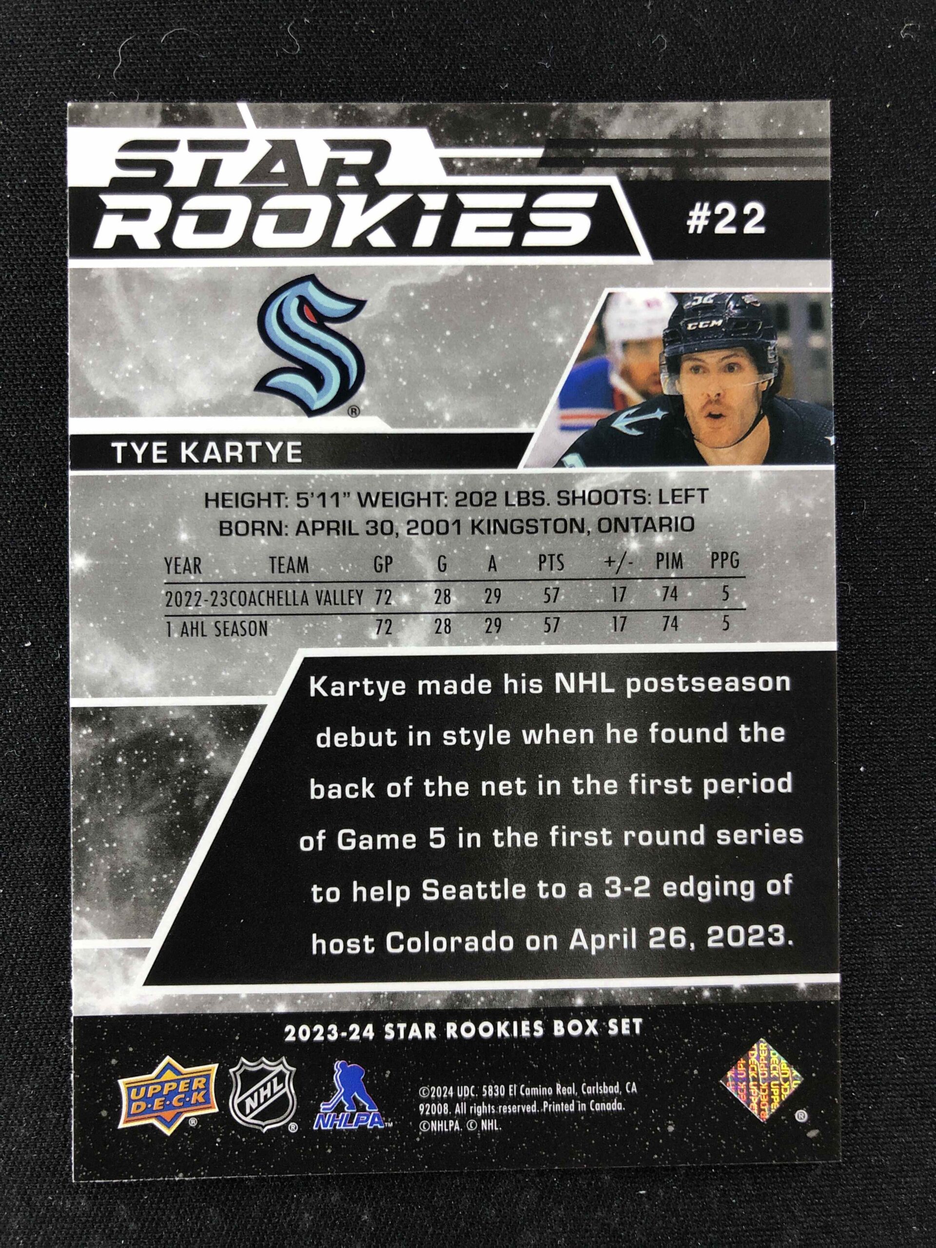 Sběratelská karta 2023/2024 Upper Deck NHL Star Rookies Box Set Base 22 Tye Kartye