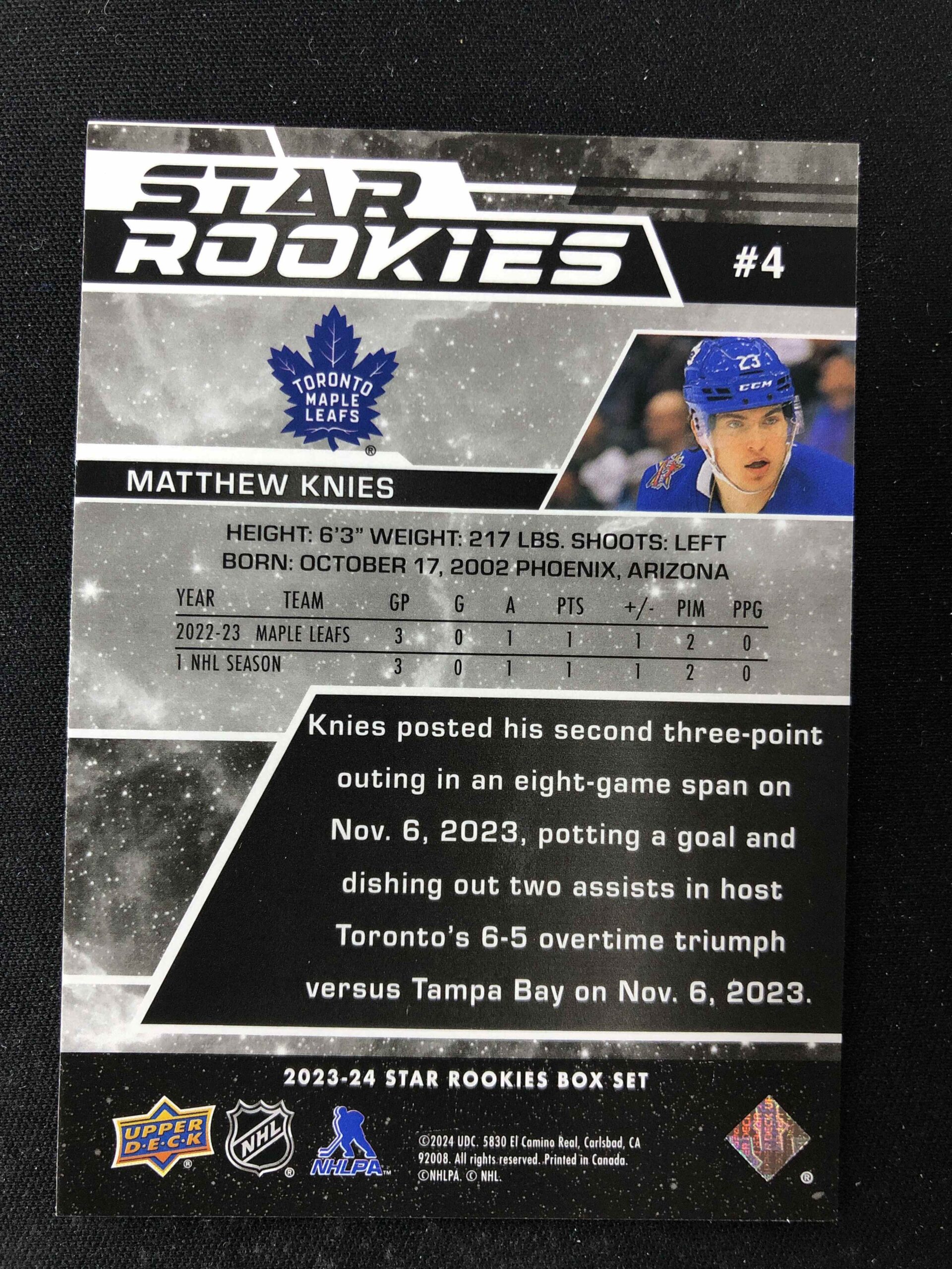 Sběratelská karta 2023/2024 Upper Deck NHL Star Rookies Box Set Base 4 Matthew Knies