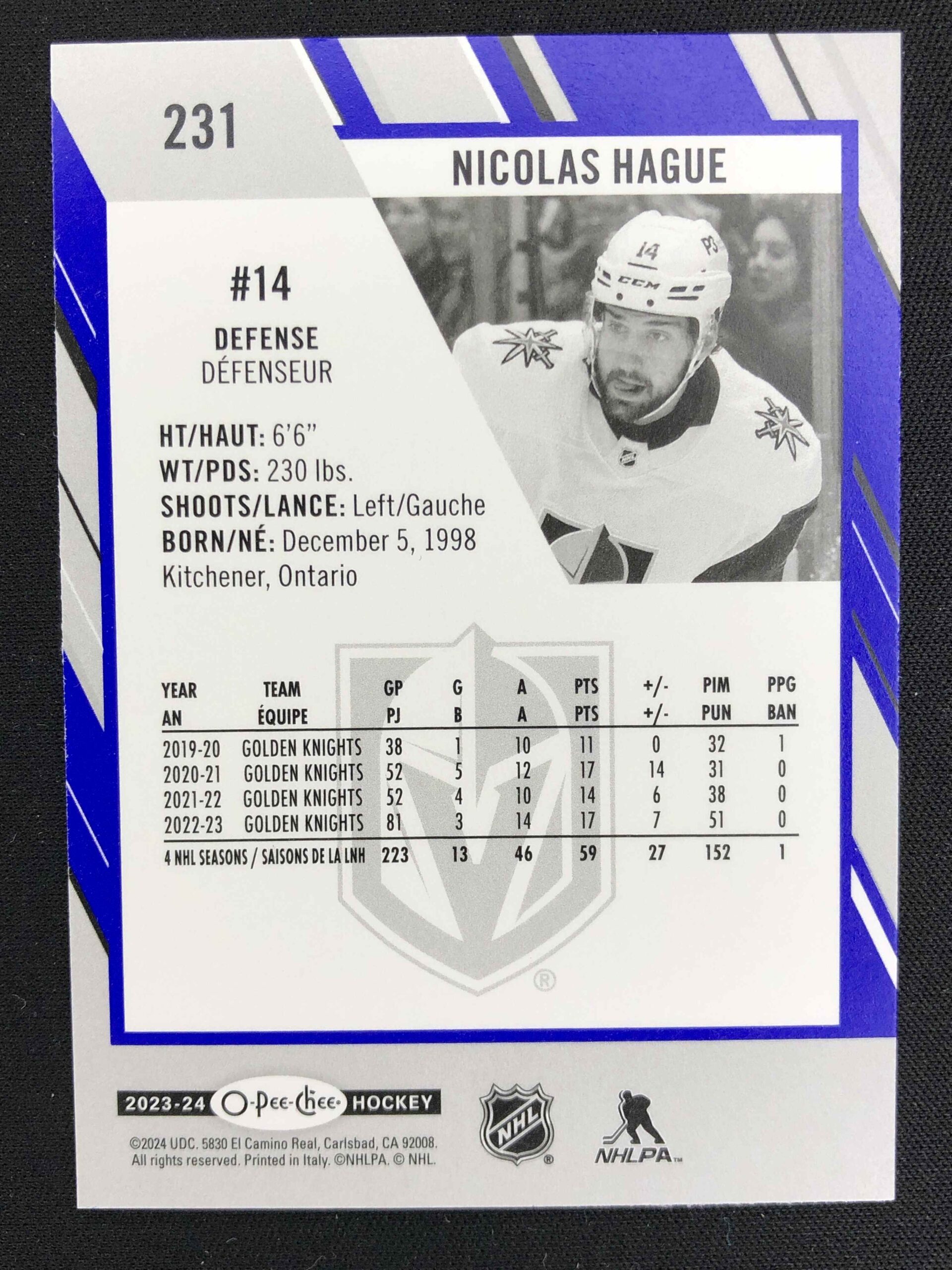 2023/2024 Upper Deck O-Pee-Chee Blue Border 231 Nicolas Hague Paralel