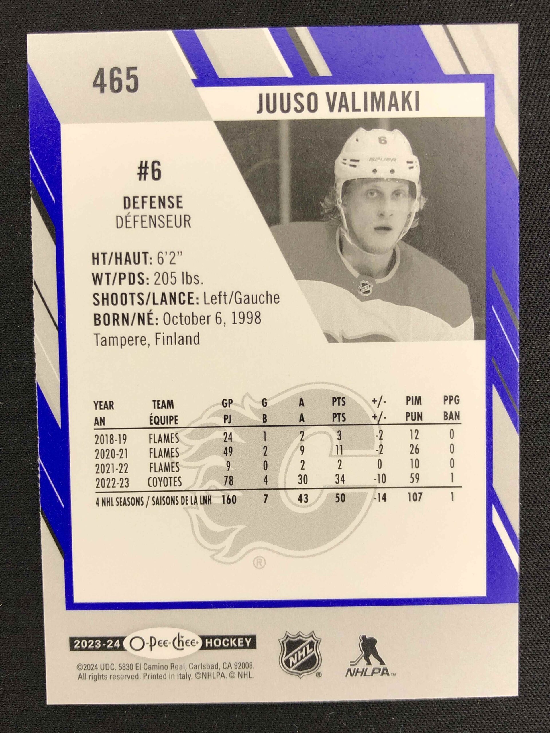 Sběratelská karta 2023/2024 Upper Deck O-Pee-Chee Blue Border 465 Juuso Valimaki Paralel
