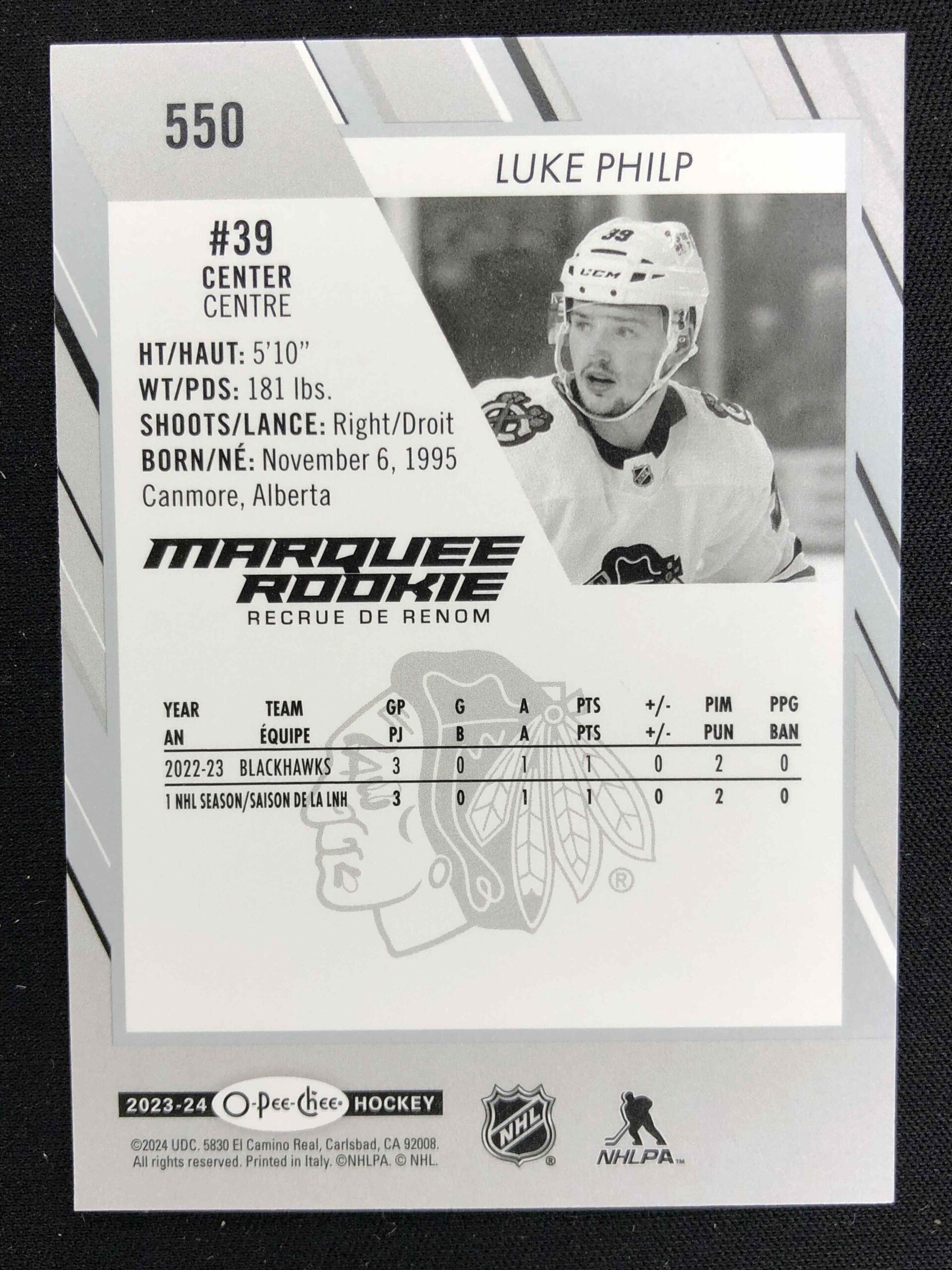 Sběratelská karta 2023/2024 Upper Deck O-Pee-Chee Marquee Rookie 550 Luke Philp Inzert