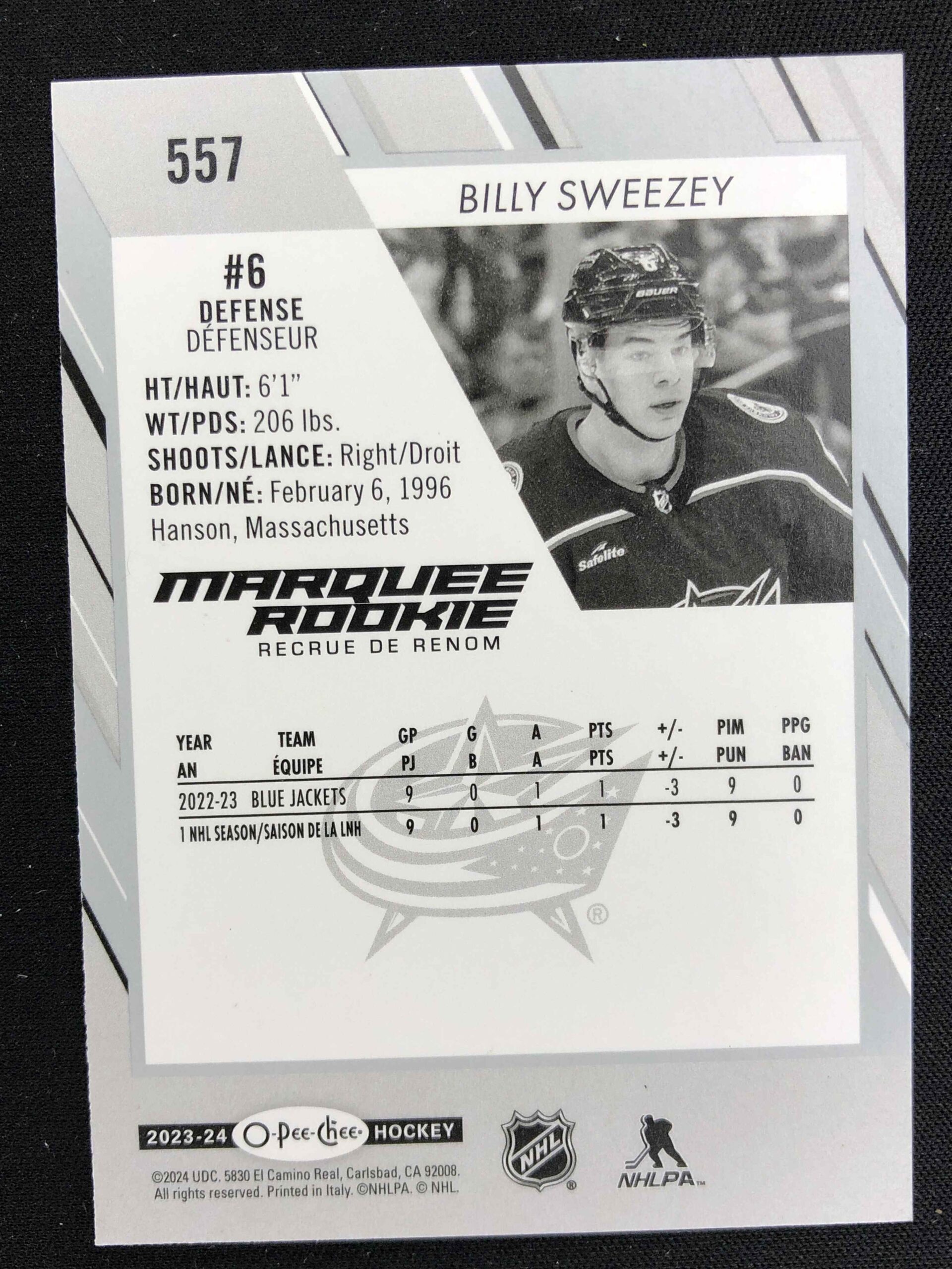Sběratelská karta 2023/2024 Upper Deck O-Pee-Chee Marquee Rookie 557 Billy Sweezey Inzert
