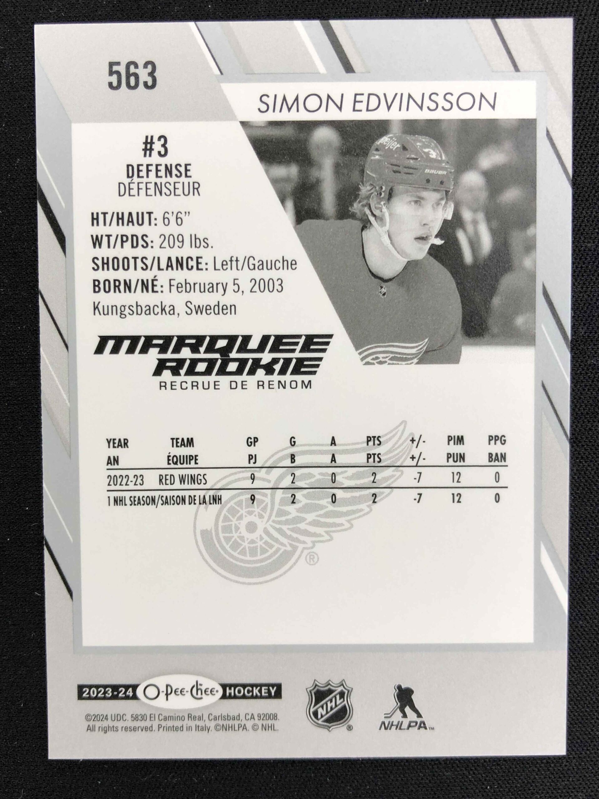 Sběratelská karta 2023/2024 Upper Deck O-Pee-Chee Marquee Rookie 563 Simon Edvinsson Inzert