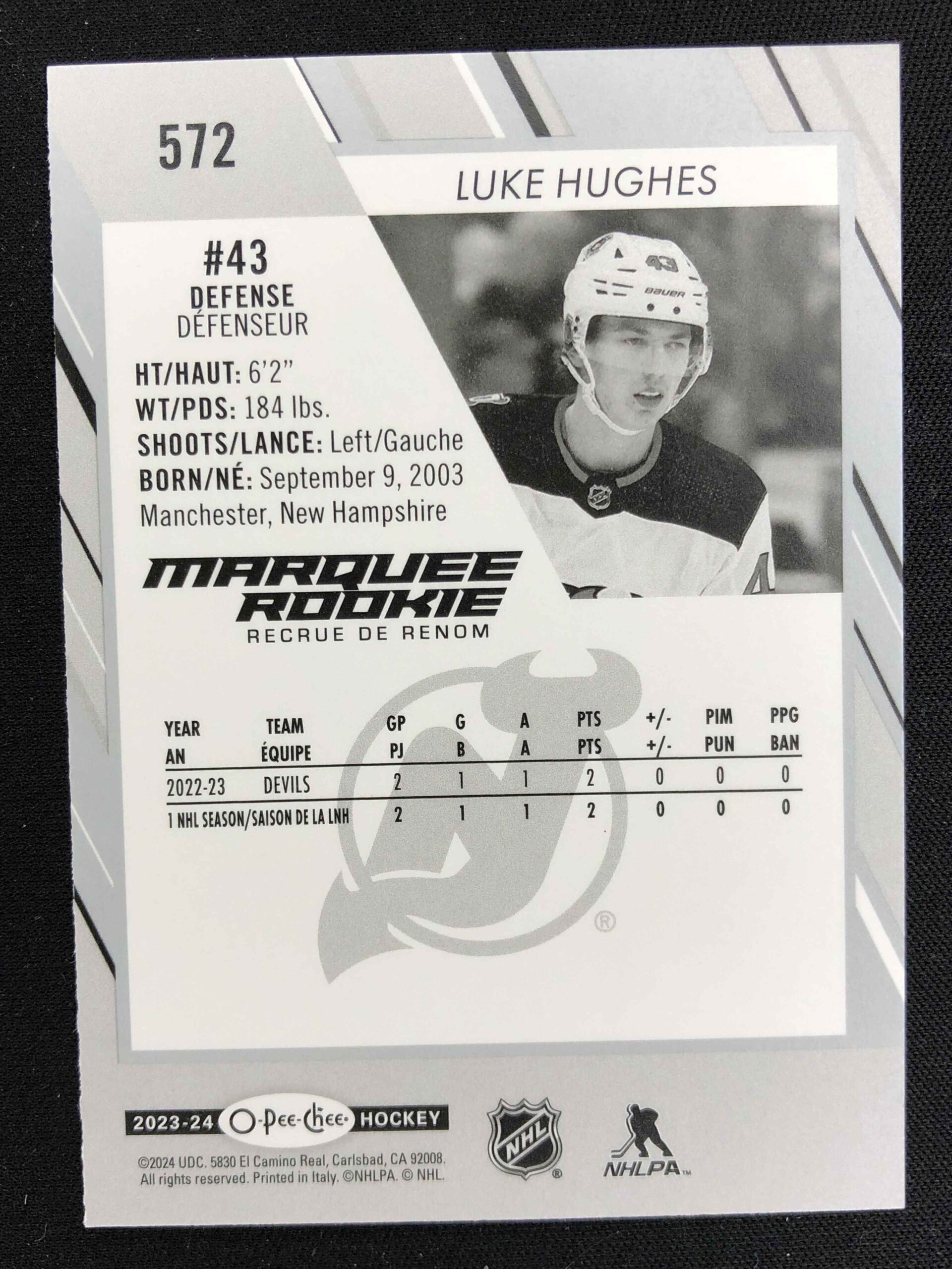 2023/2024 Upper Deck O-Pee-Chee Marquee Rookie 572 Luke Hughes Inzert