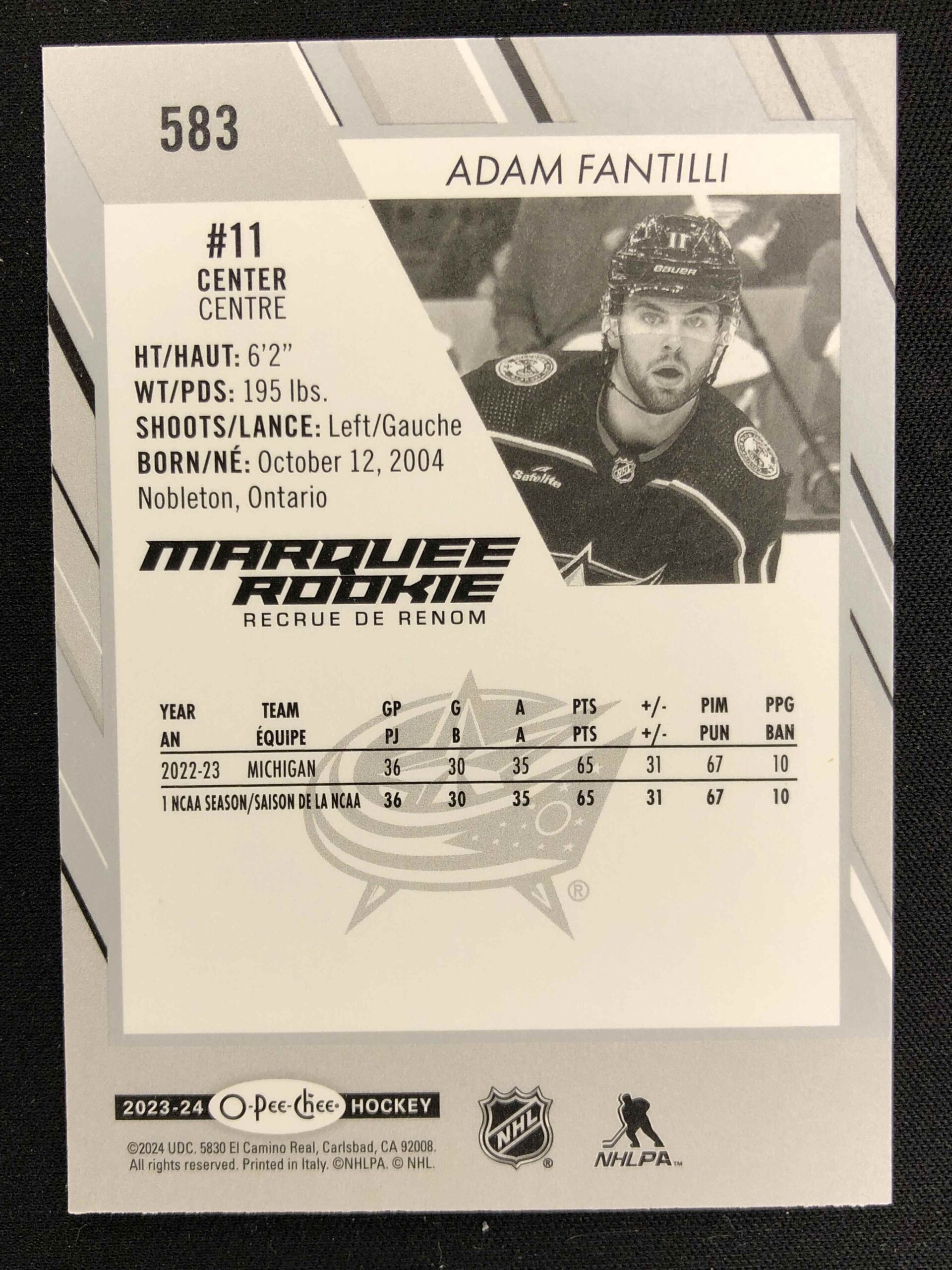Sběratelská karta 2023/2024 Upper Deck O-Pee-Chee Marquee Rookie 583 Adam Fantilli Inzert