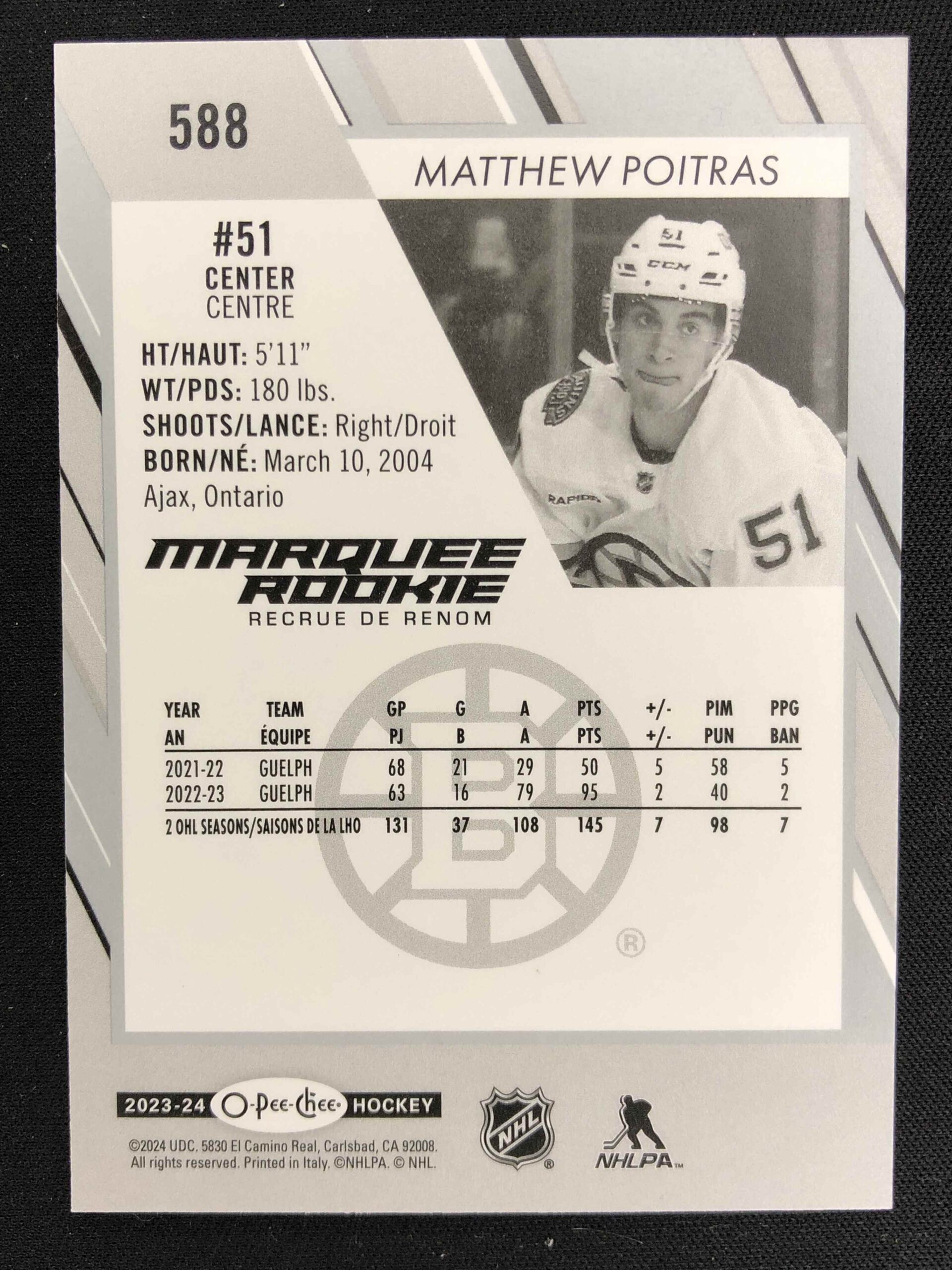 Sběratelská karta 2023/2024 Upper Deck O-Pee-Chee Marquee Rookie 588 Matthew Poitras Inzert