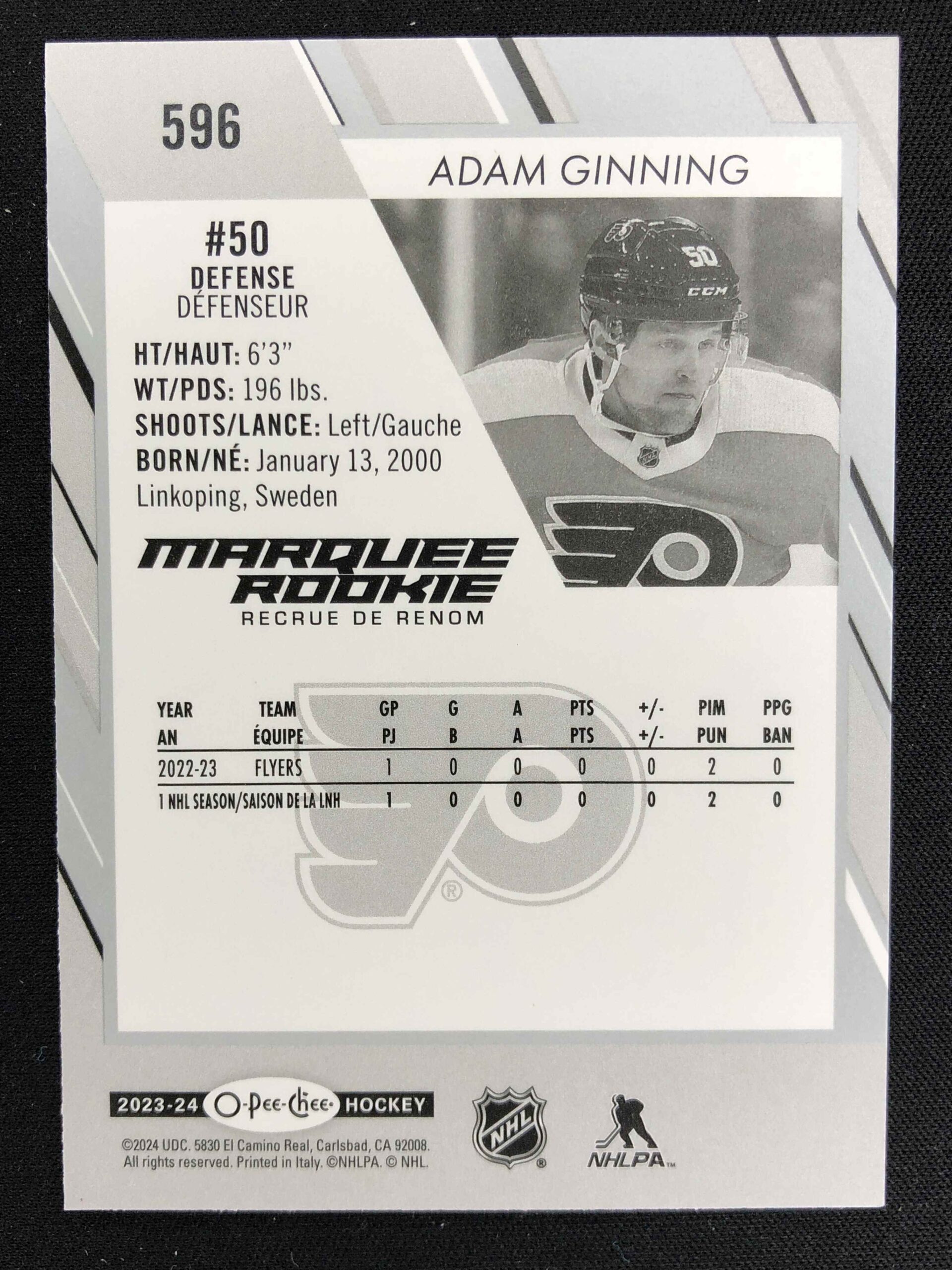 2023/2024 Upper Deck O-Pee-Chee Marquee Rookie 596 Adam Ginning Inzert
