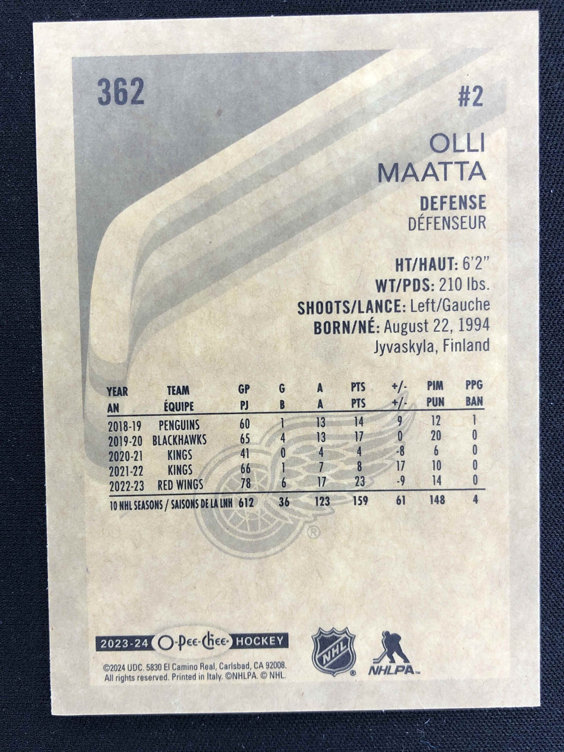 Sběratelská karta 2023/2024 Upper Deck O-Pee-Chee Retro 362 Olli Maatta Paralel