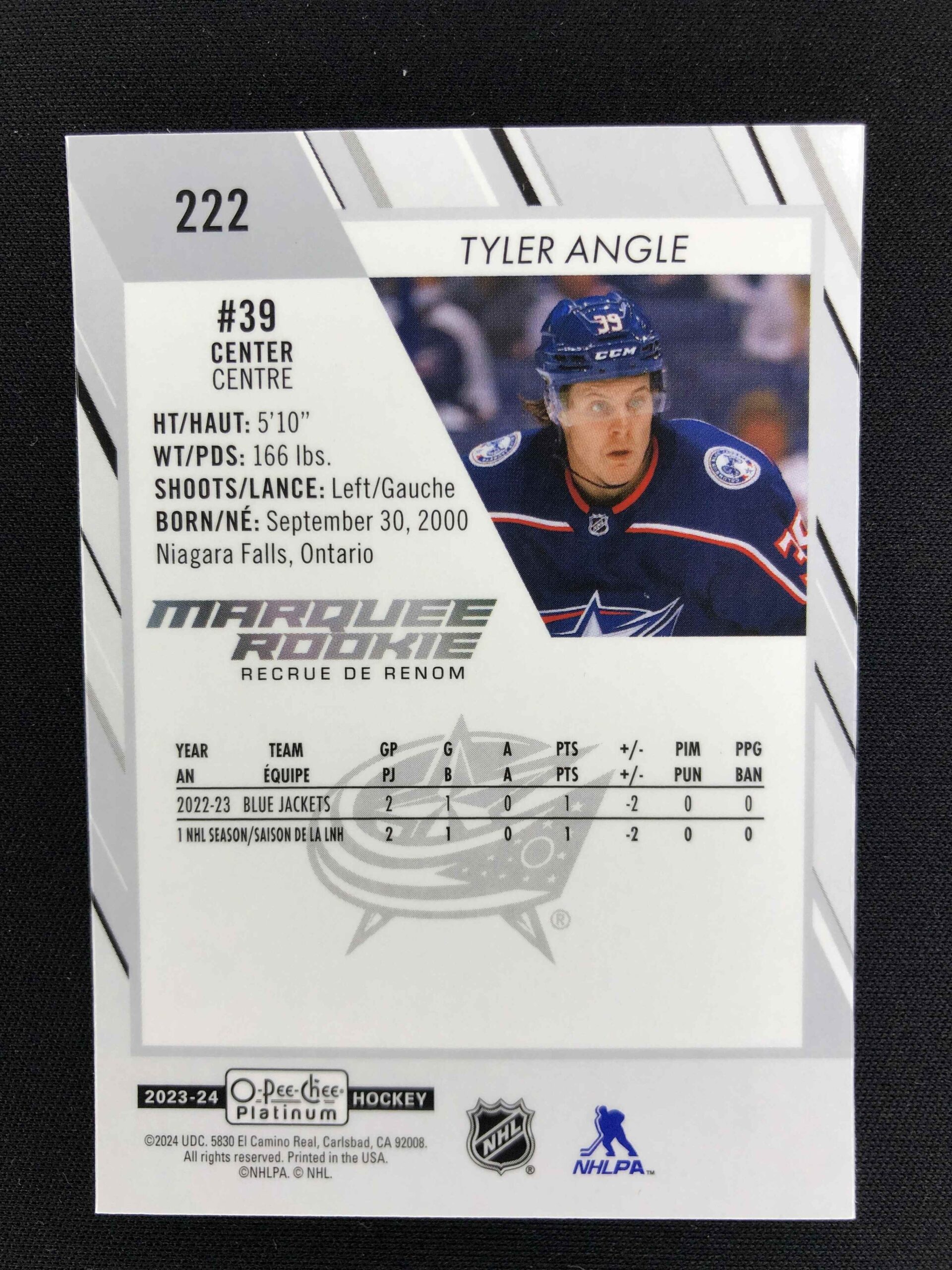 Sběratelská karta 2023/2024 Upper Deck OPC Platinum Marquee Rookie 222 Tyler Angle