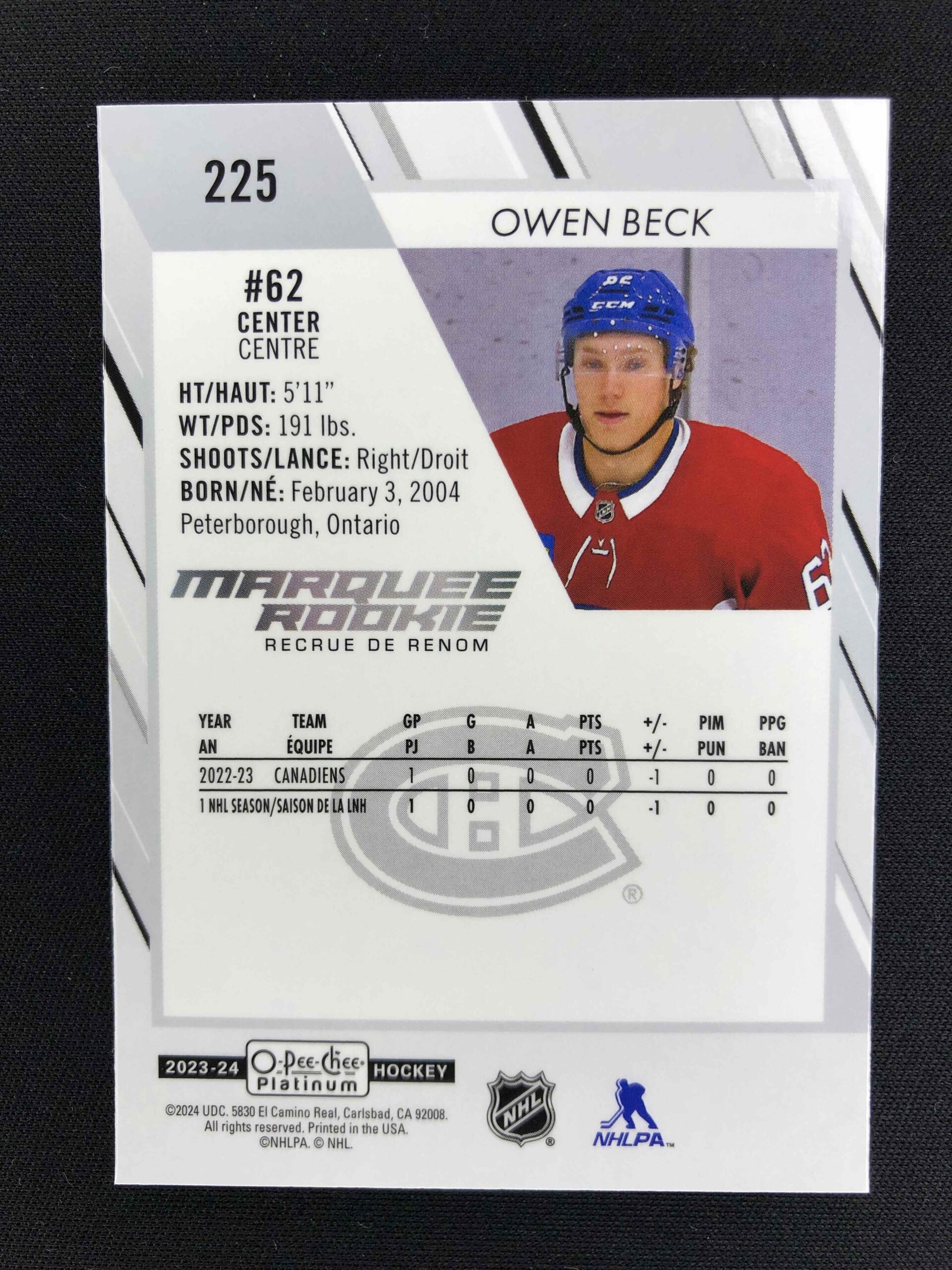 Sběratelská karta 2023/2024 Upper Deck OPC Platinum Marquee Rookie 225 Owen Beck