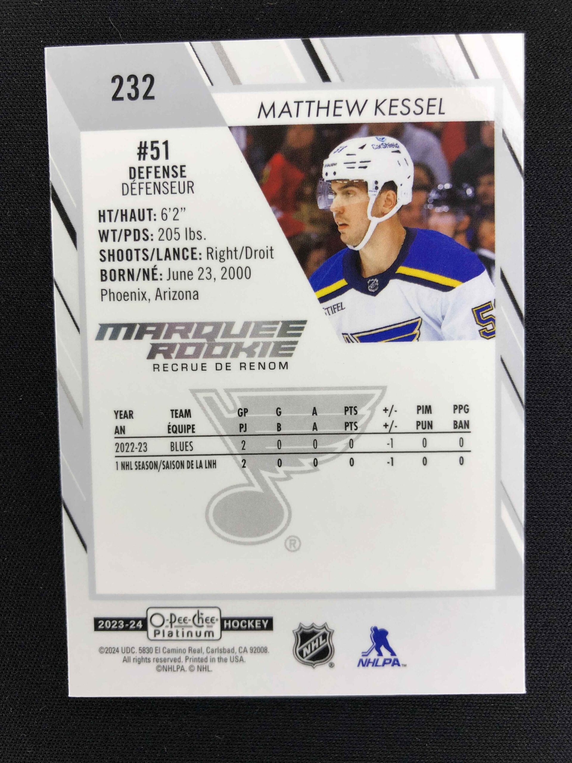 Sběratelská karta 2023/2024 Upper Deck OPC Platinum Marquee Rookie 232 Matthew Kessel