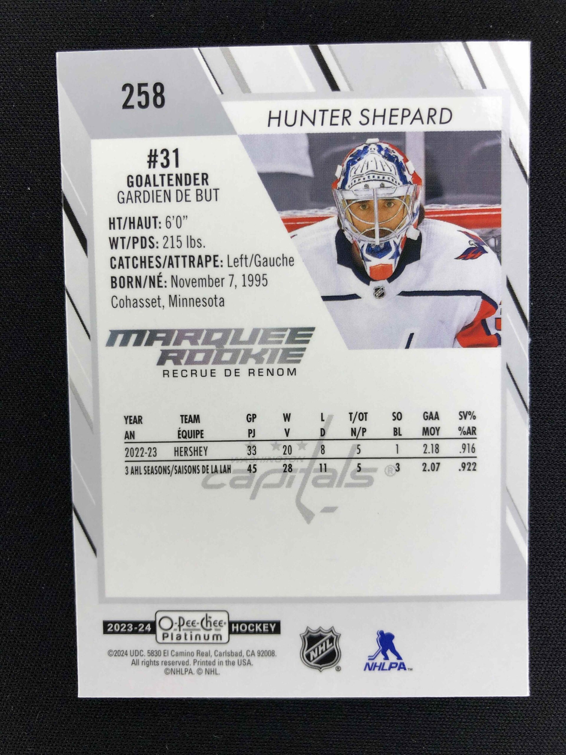 Sběratelská karta 2023/2024 Upper Deck OPC Platinum Marquee Rookie 258 Hunter Shepard