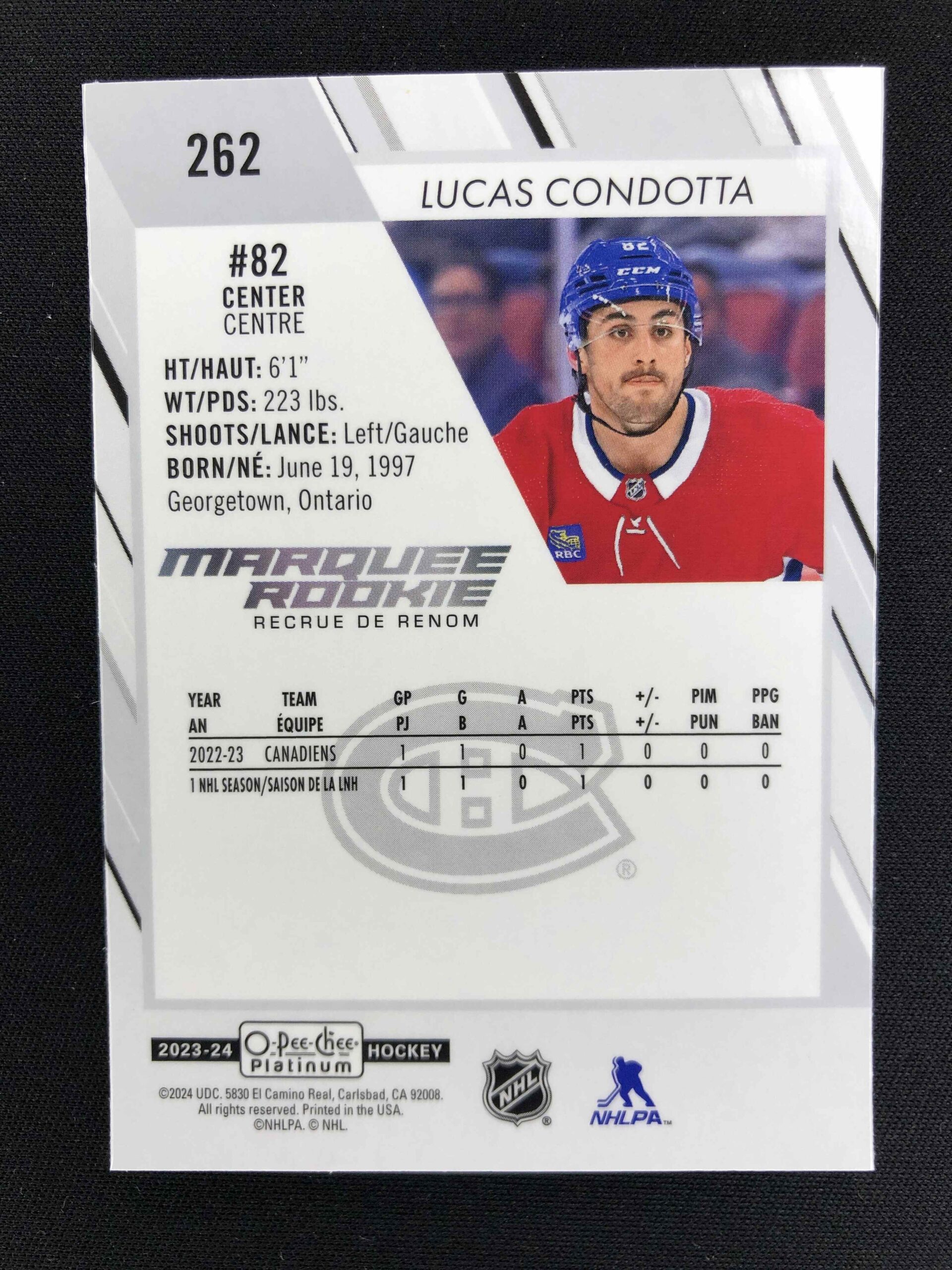 Sběratelská karta 2023/2024 Upper Deck OPC Platinum Marquee Rookie 262 Lucas Condotta