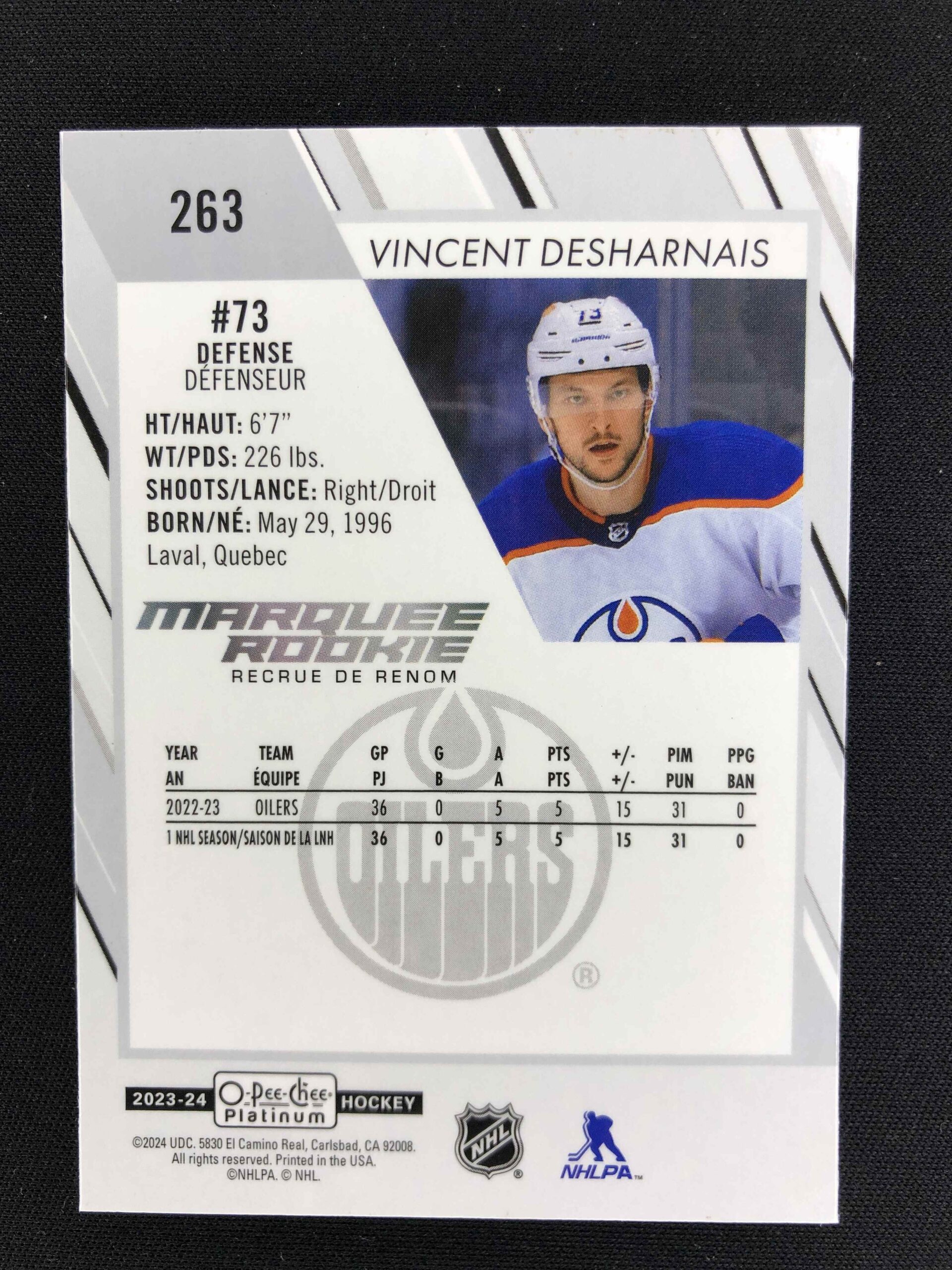 2023/2024 Upper Deck OPC Platinum Marquee Rookie 263 Vincent Desharnais