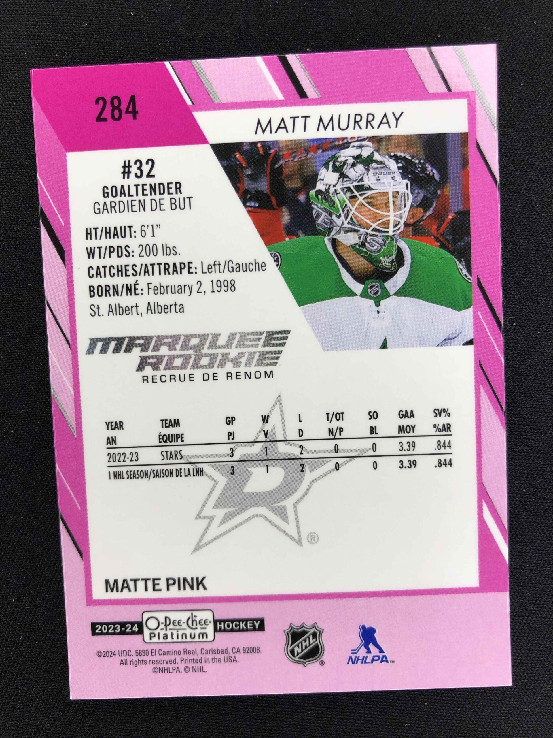 Sběratelská karta 2023/2024 Upper Deck OPC Platinum Matte Pink Marquee Rookie 284 Matt Murray Paralel