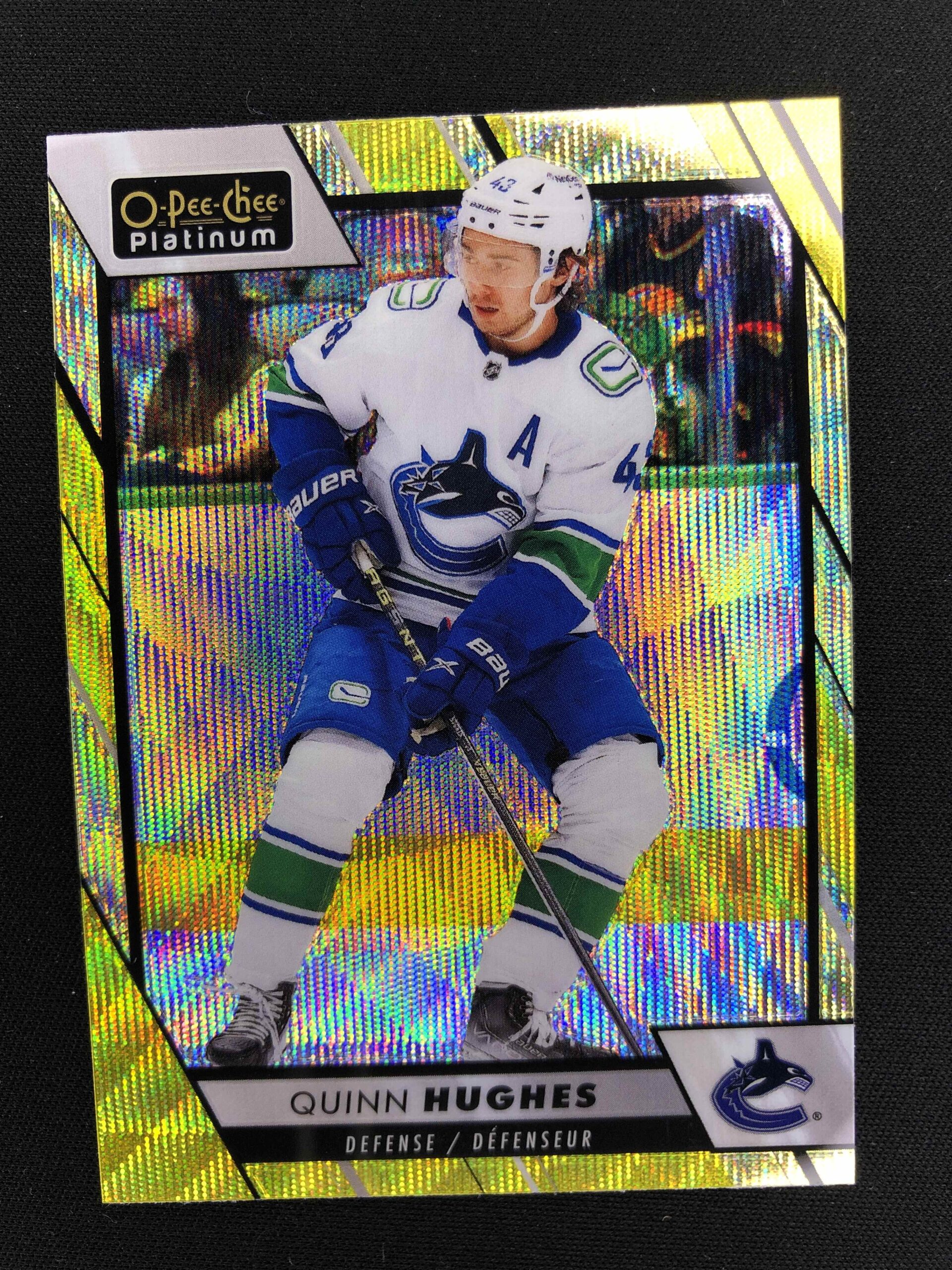 2023/2024 Upper Deck OPC Platinum Neon Yellow Surge 29 Quinn Hughes Paralel