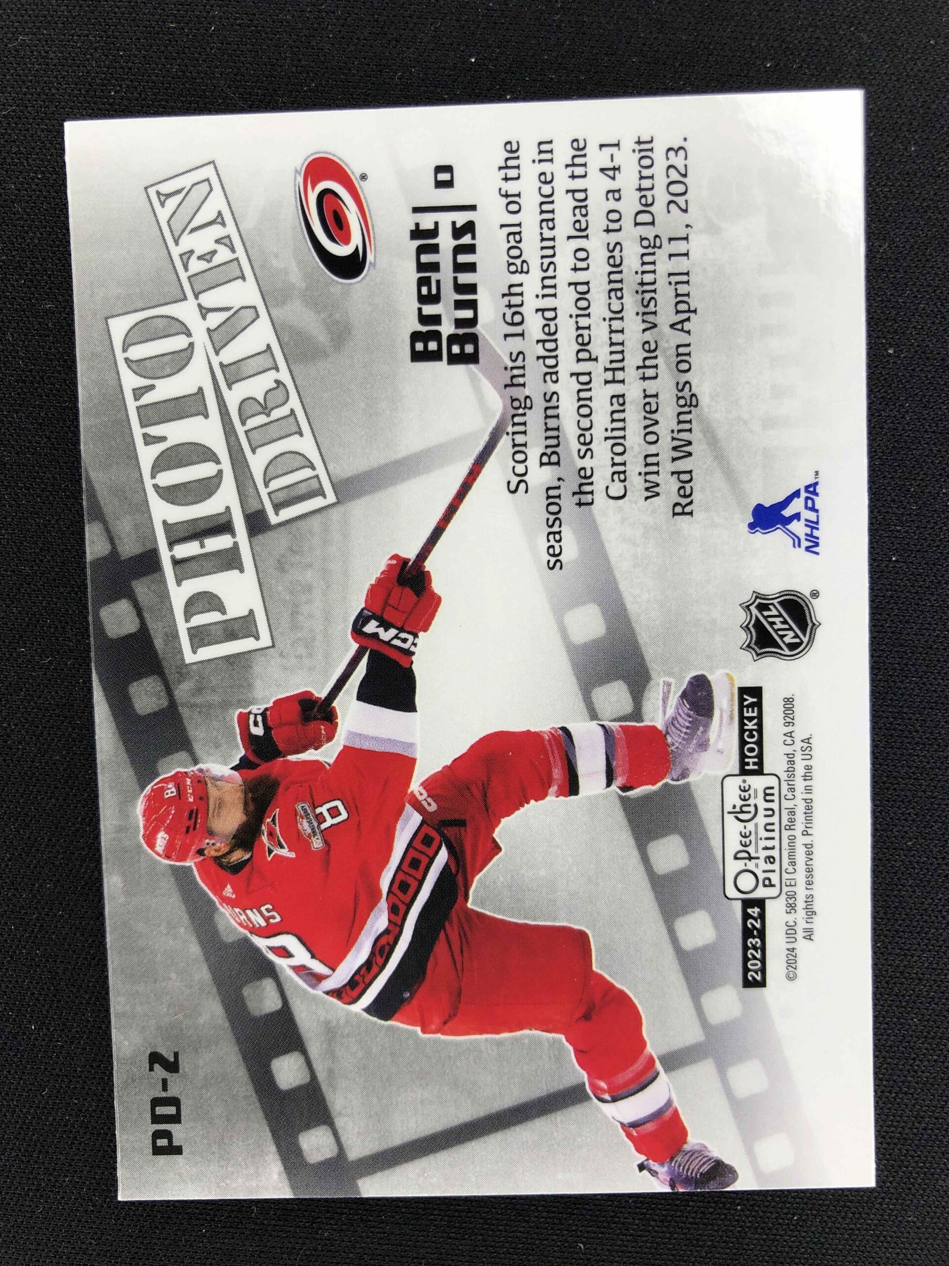 Sběratelská karta 2023/2024 Upper Deck OPC Platinum Photo Driven PD-2 Brent Burns Inzert