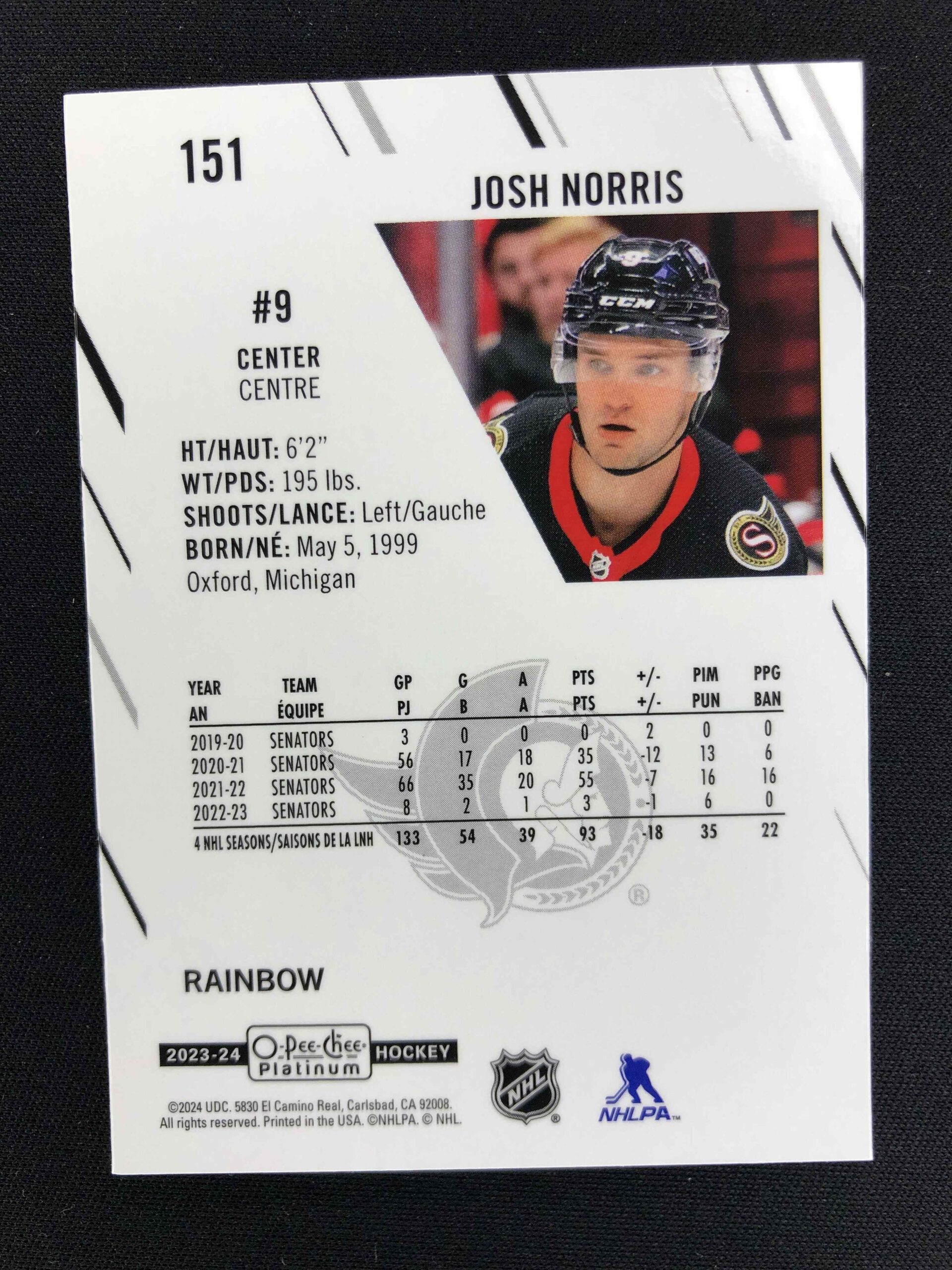 Sběratelská karta 2023/2024 Upper Deck OPC Platinum Rainbow 151 Josh Norris Paralel