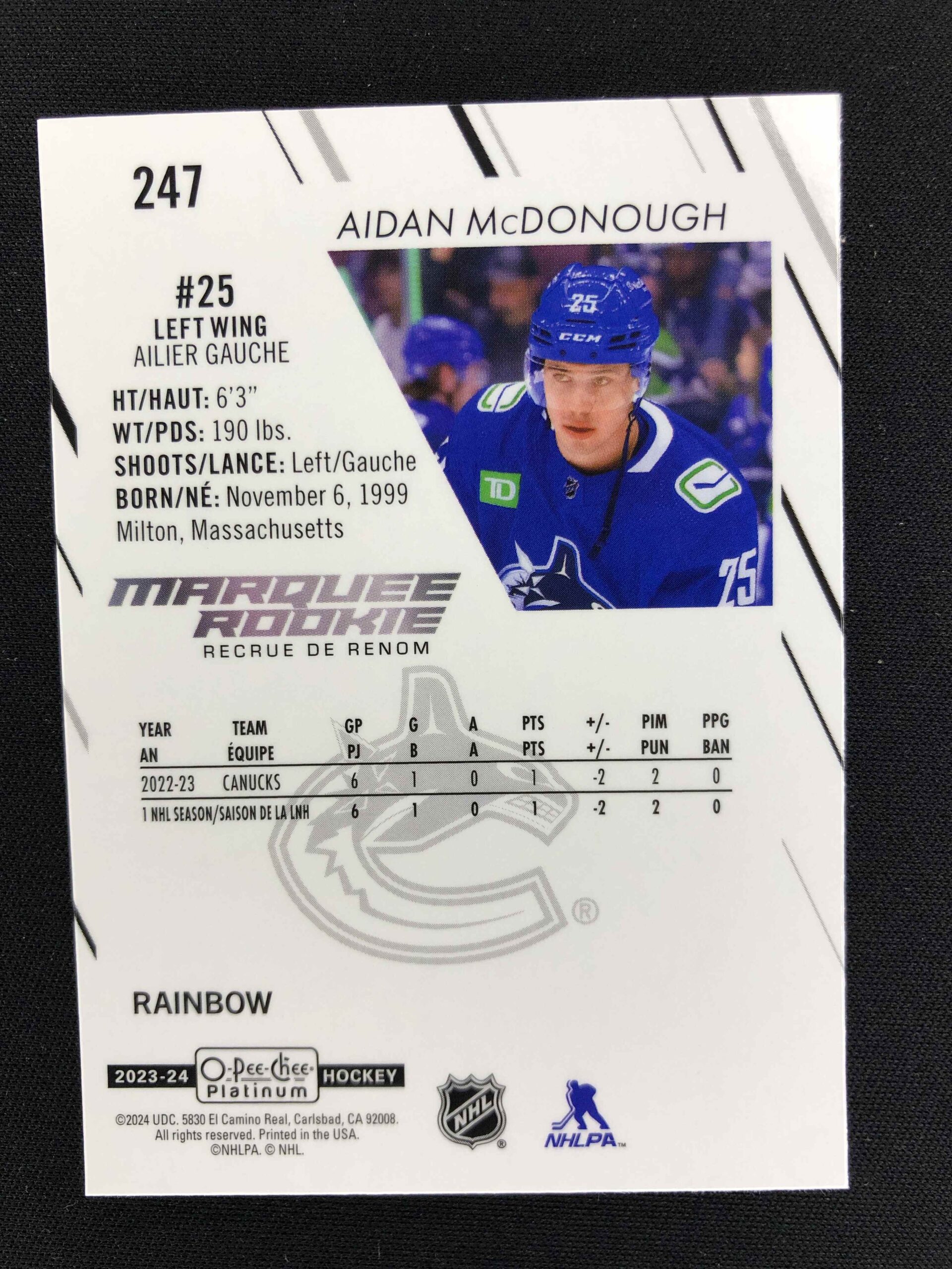 Sběratelská karta 2023/2024 Upper Deck OPC Platinum Rainbow Marquee Rookie 247 Aidan McDonough Paralel